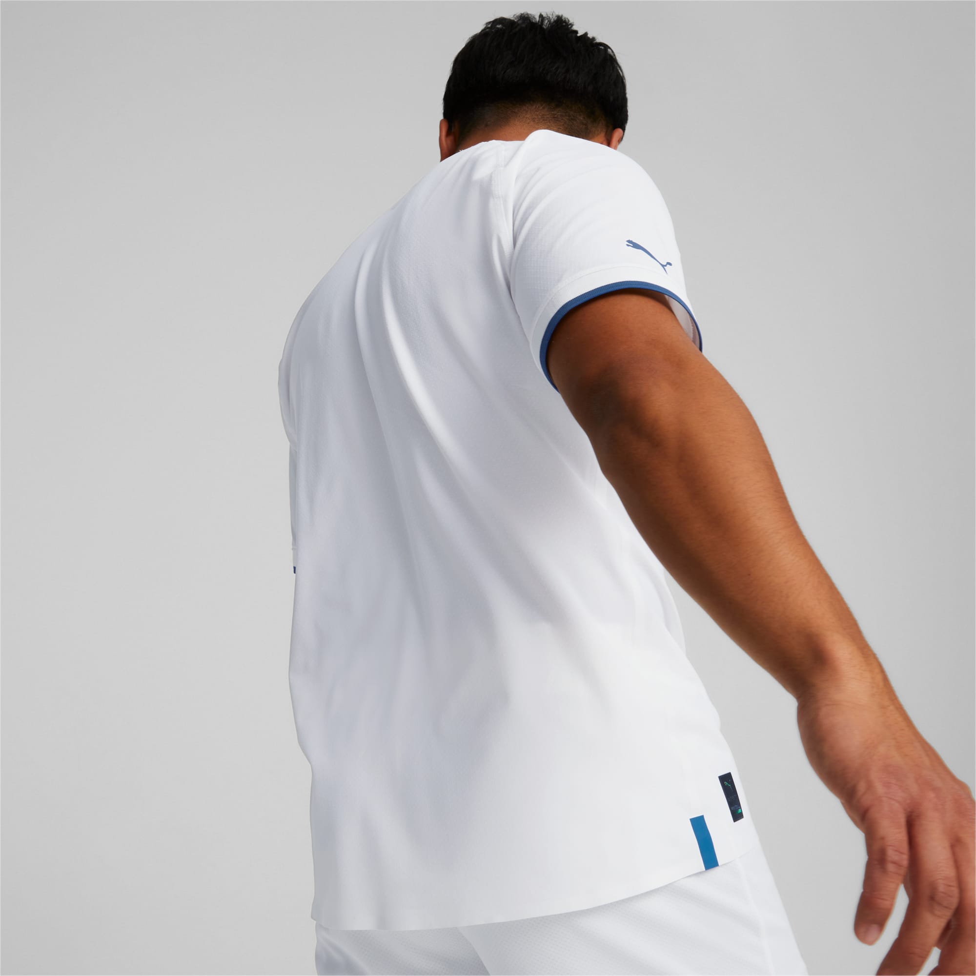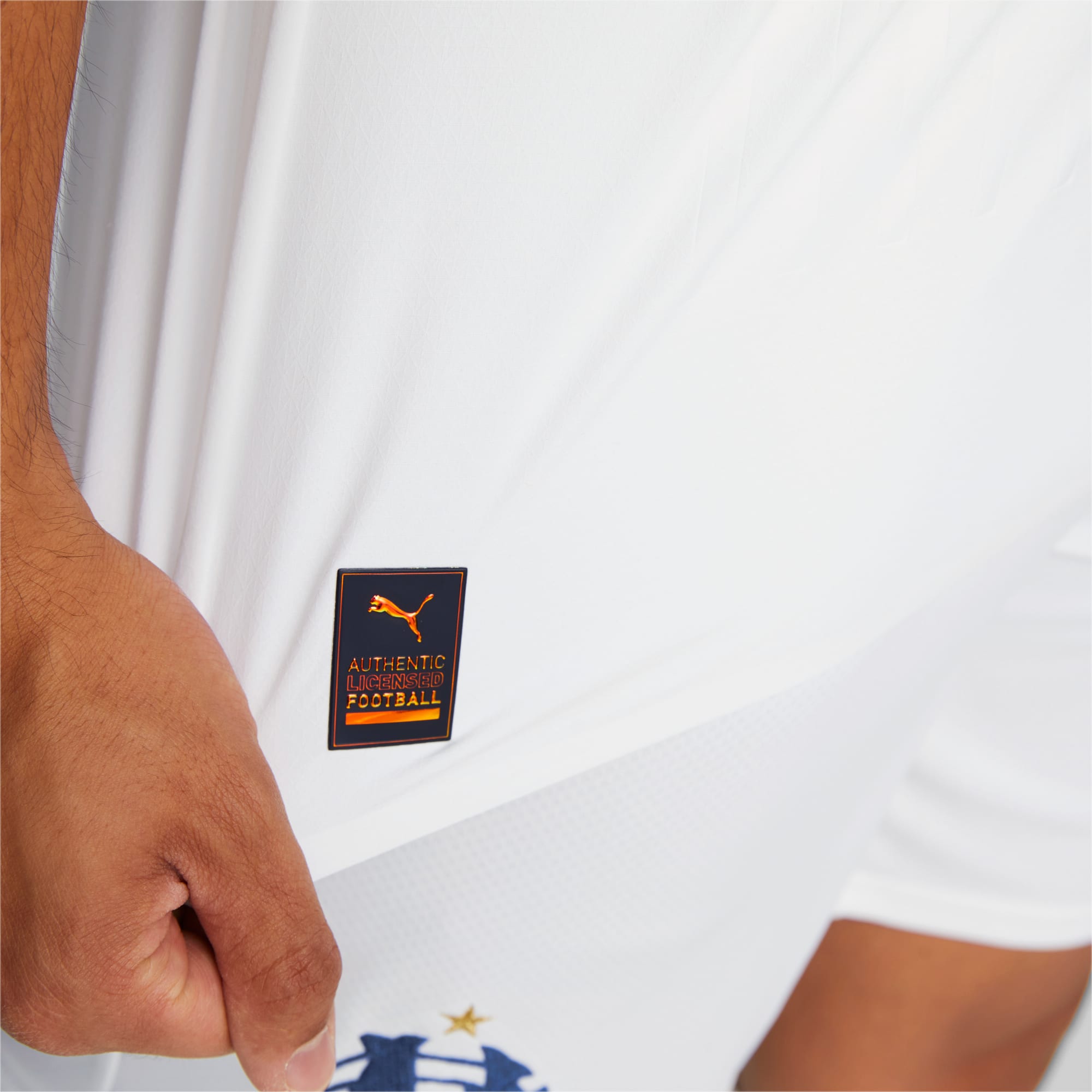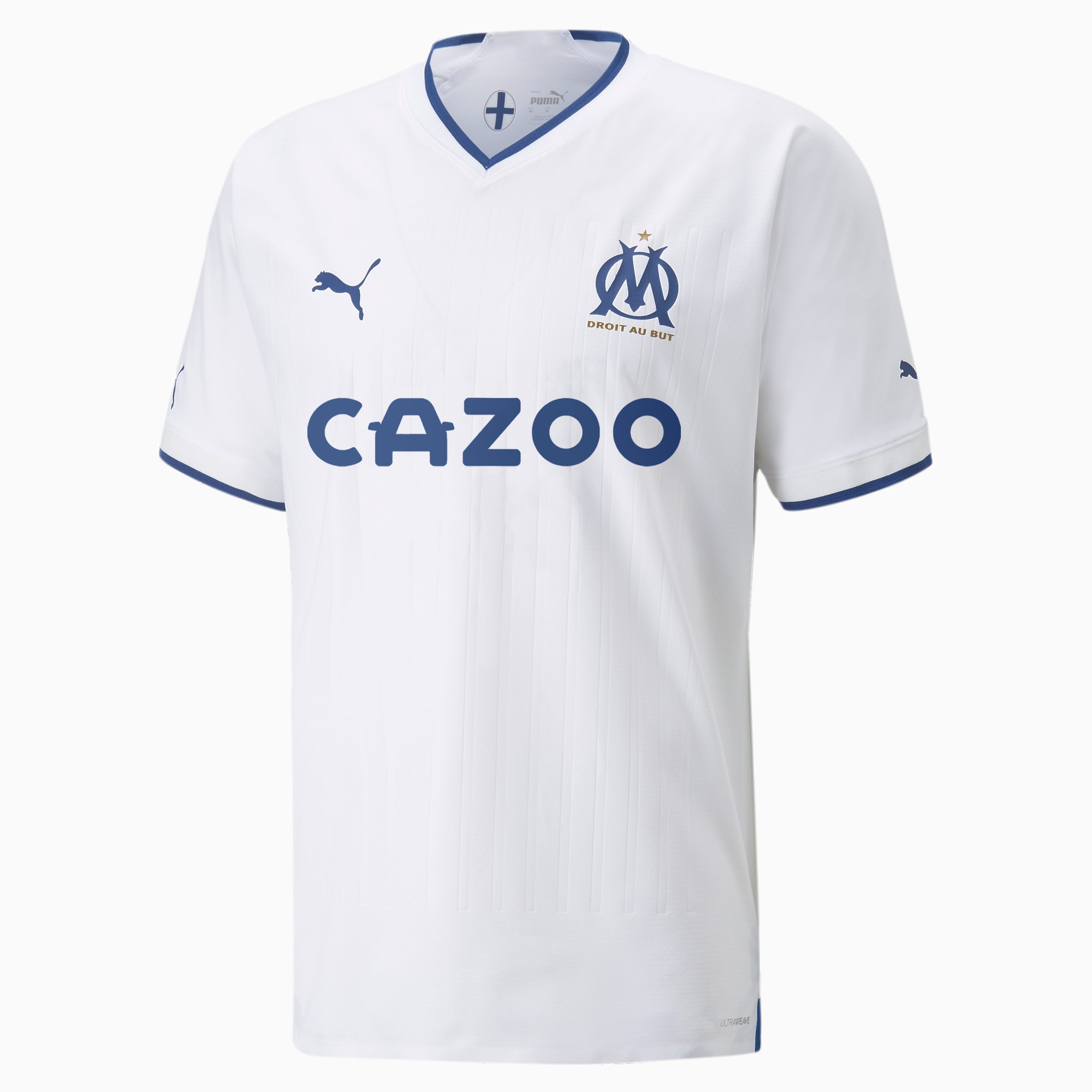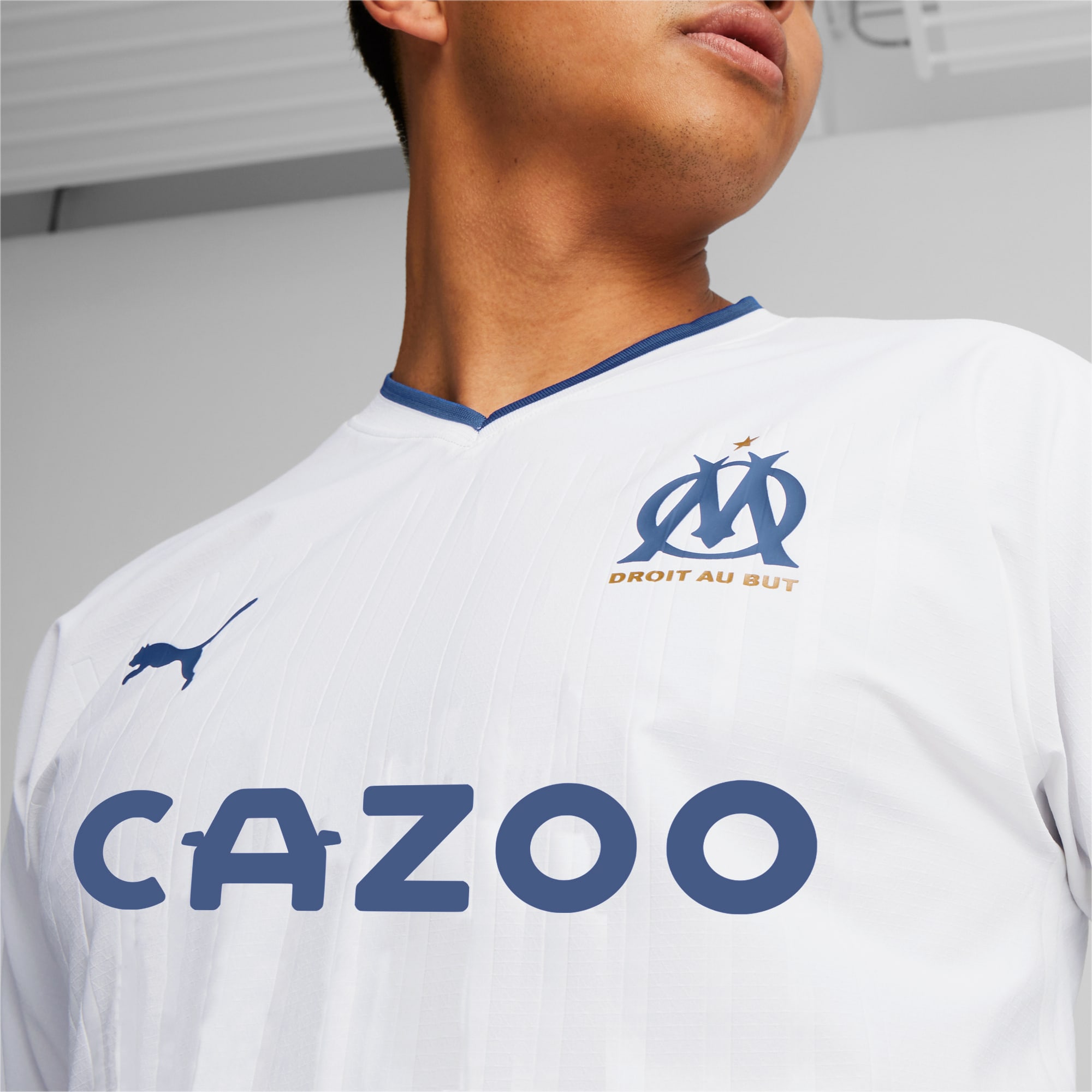 The 2022/23 Olympique de Marseille Home jersey pays tribute to the legends of the early '70s golden era. The shirt sports a heritage design with retro-inspired details, honoring the team that won the cup in 1969, the league in 1971, and the domestic double in 1972. Pops of Limoges blue round off the theme.