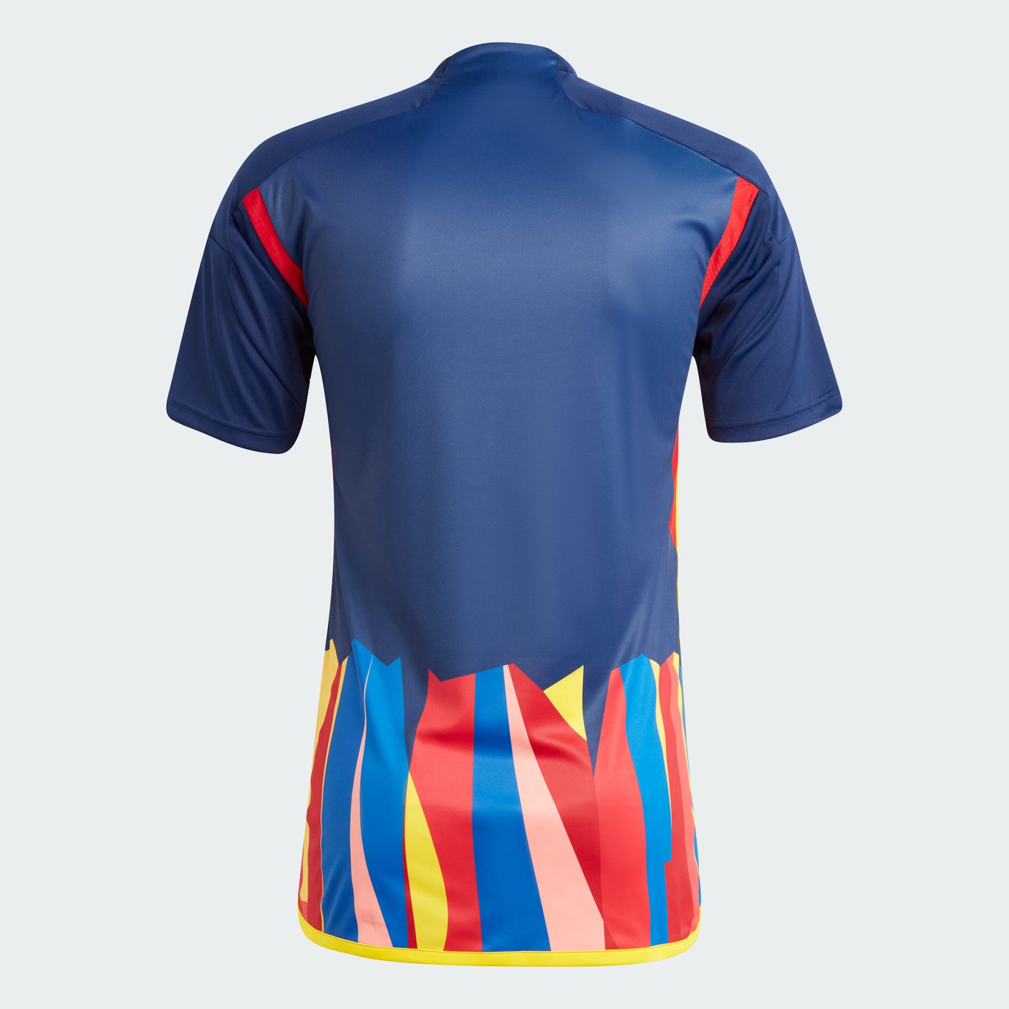 Poter, renowned for his street and abstract art, infuses the jersey with his signature pop style using vivid colours and geometric patterns.