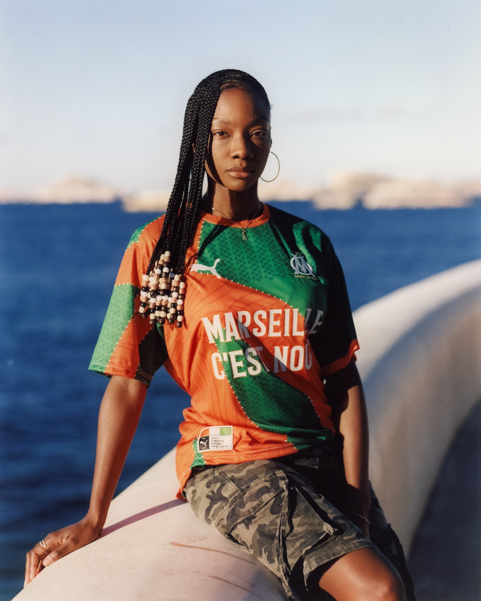 Developed in collaboration with creative studio WAY TV and Marseille based designer Tareet, the range consists of seven bi identity football shirts. Each jersey represents a key African diaspora present in Marseille, including Morocco, Senegal, Ivory Coast, Algeria, Tunisia, DR Congo and Comoros.