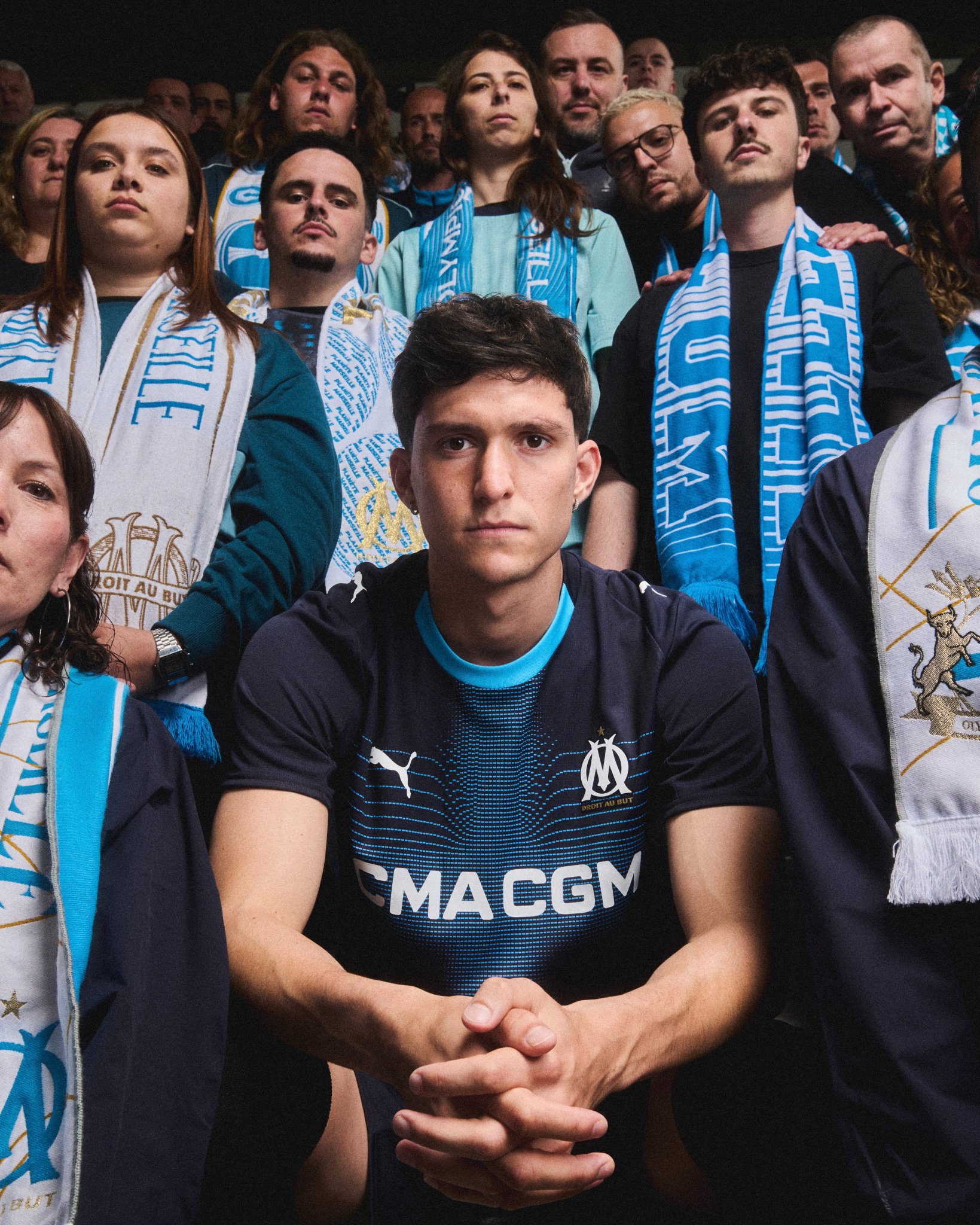 The design draws inspiration from the club’s supporters, with the theme ‘The Marseille Army’ paying homage to the atmosphere of the Orange Vélodrome.