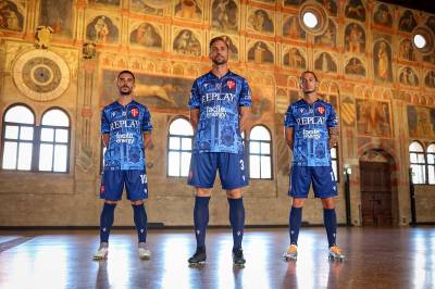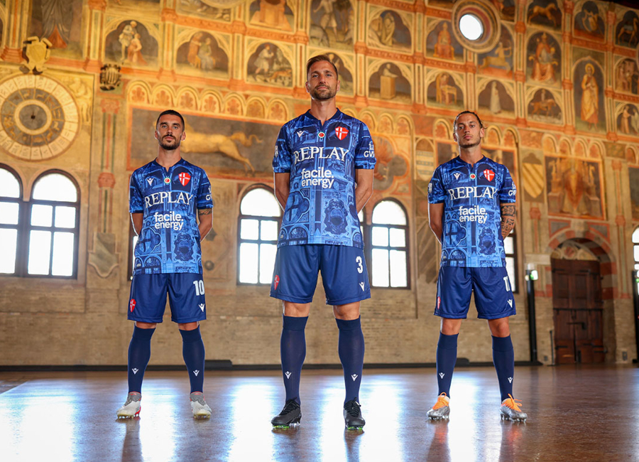The new Macron secondary-change design for I Biancoscudati is in tones of blue with a depiction of the “Padova Urbs Picta” - the 14th century frescoes which are spread between various buildings in the city of Padua.