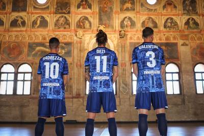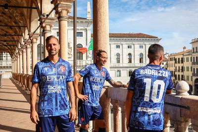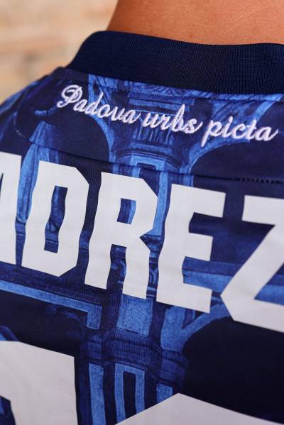 Actually a collaboration with sponsor, and Italian fashion brand, Replay, the shirt boasts a striking allover print - specifically of the frescoes on the south wall of Palazzo della Ragione - which is overlaid with the partner marks, the full-colour crest and, on the upper back, the embroidered inscription “Padova urbs picta”.