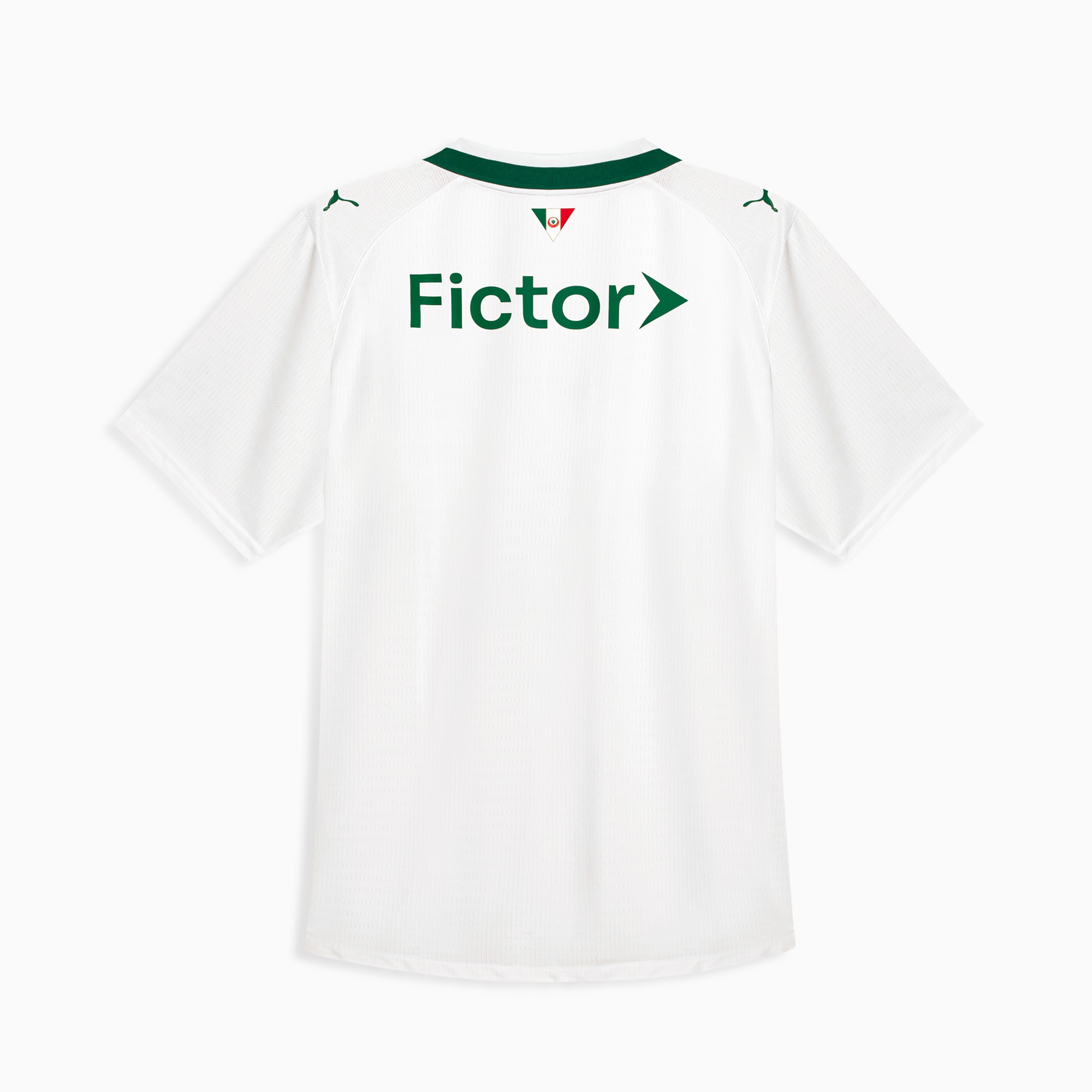 The Palmeiras crest is placed on the left chest and is accompanied by a single red star above, representing the club’s historic achievements. Puma branding appears on the opposite side of the chest and on the shoulders. A small Italian flag sign off is positioned at the back of the collar as a further heritage reference.