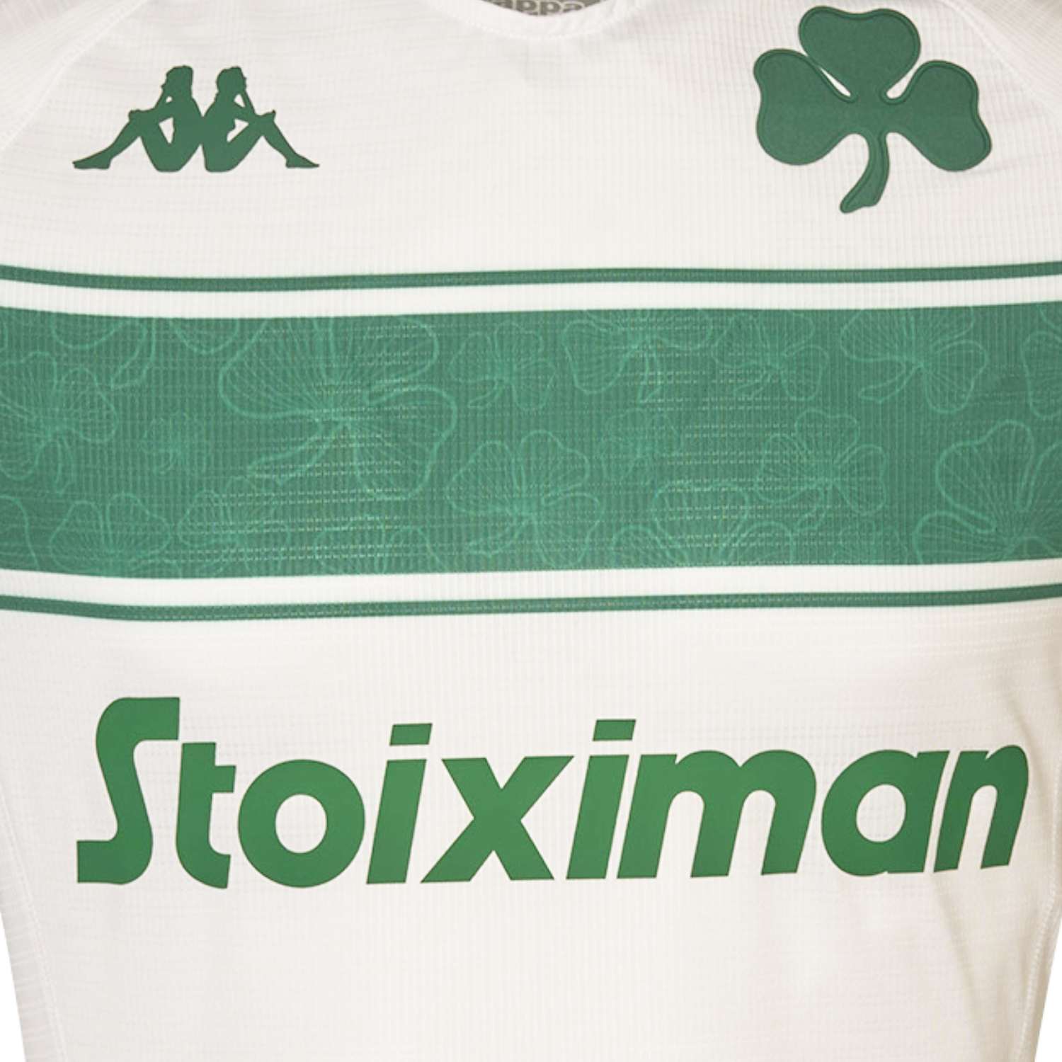 There is further green trim, and the Omini logos on the sleeves also contrast along with the “Stoiximan” sponsorship print (albeit in a mismatching green).
