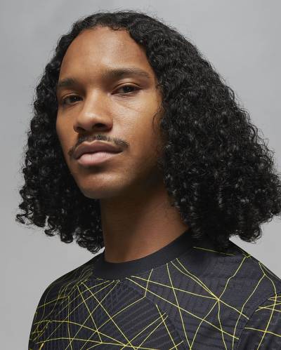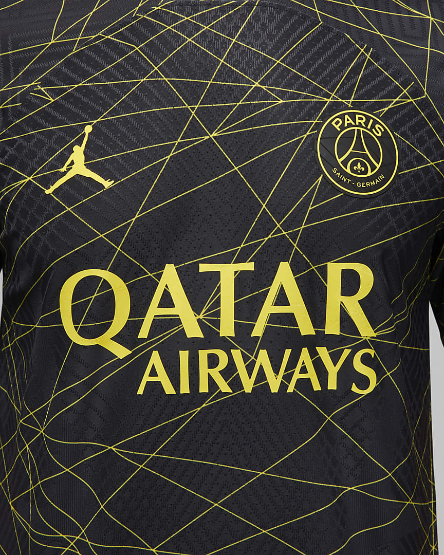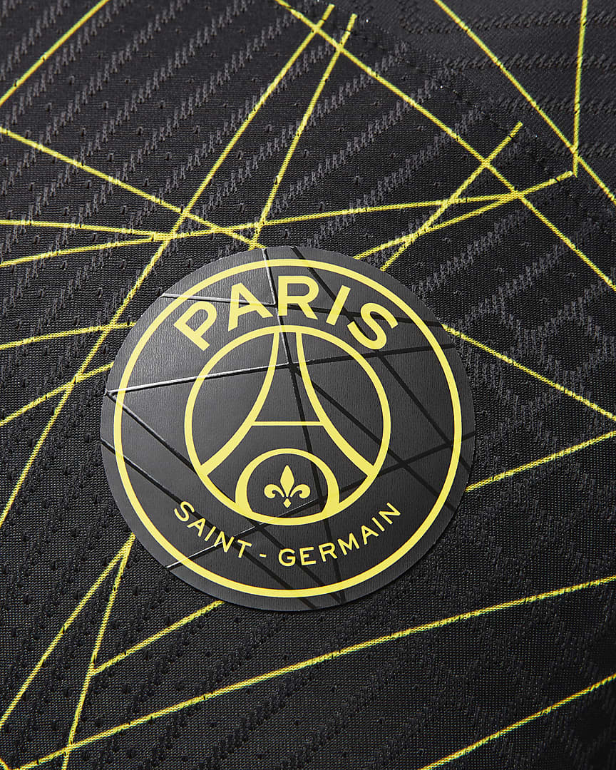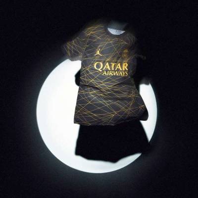 The graphical embellishment combined with the backdrop is intended to represent the Parisian sky at night, lit up with artificial light, while the shirt - complete with Qatar Airways and GOAT sponsorship logos and colour-converted crest - forms a kit with black shorts and socks.