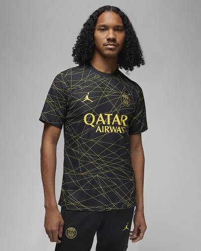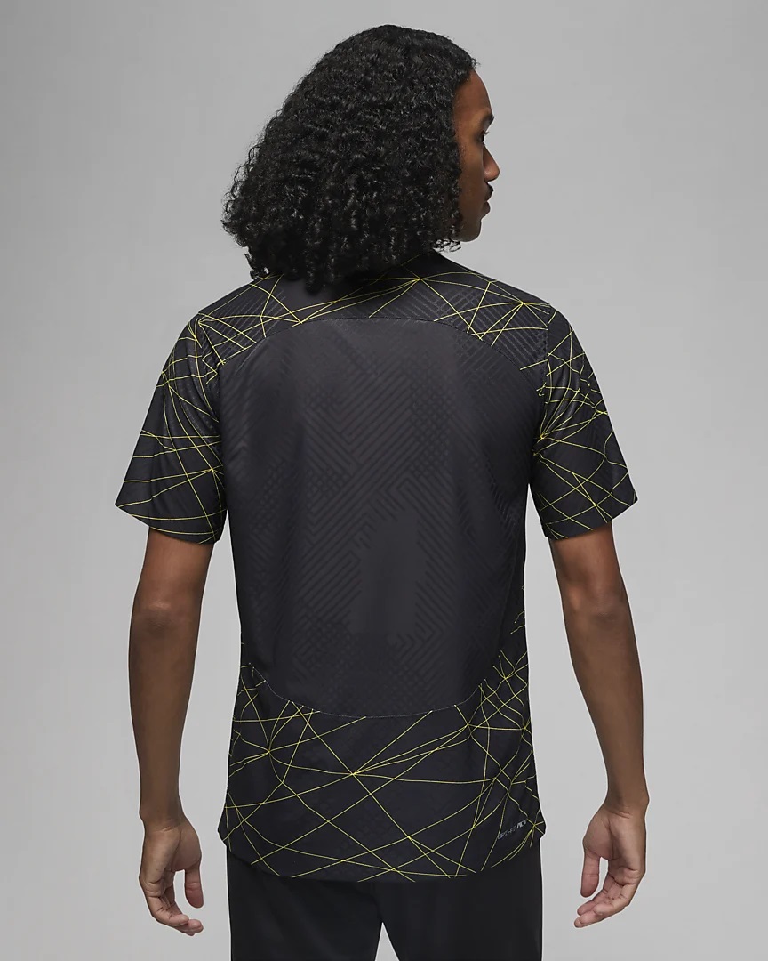 The new release from Nike - featuring the Jordan Brand/Jumpman logo - boasts a black base and, considering the article’s debut in a friendly in Saudi Arabia, is appropriately decorated in “Tour Yellow”.
