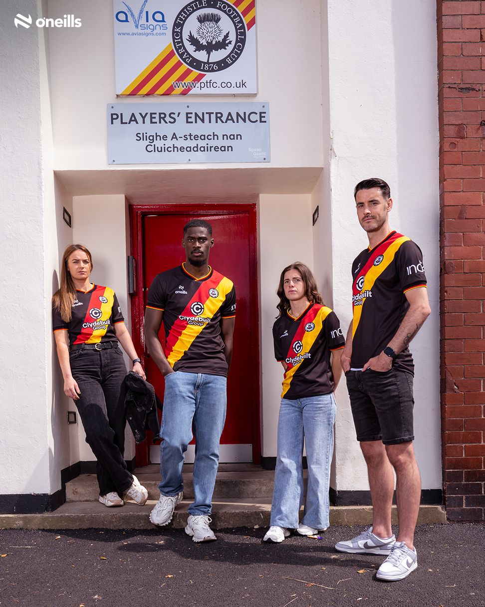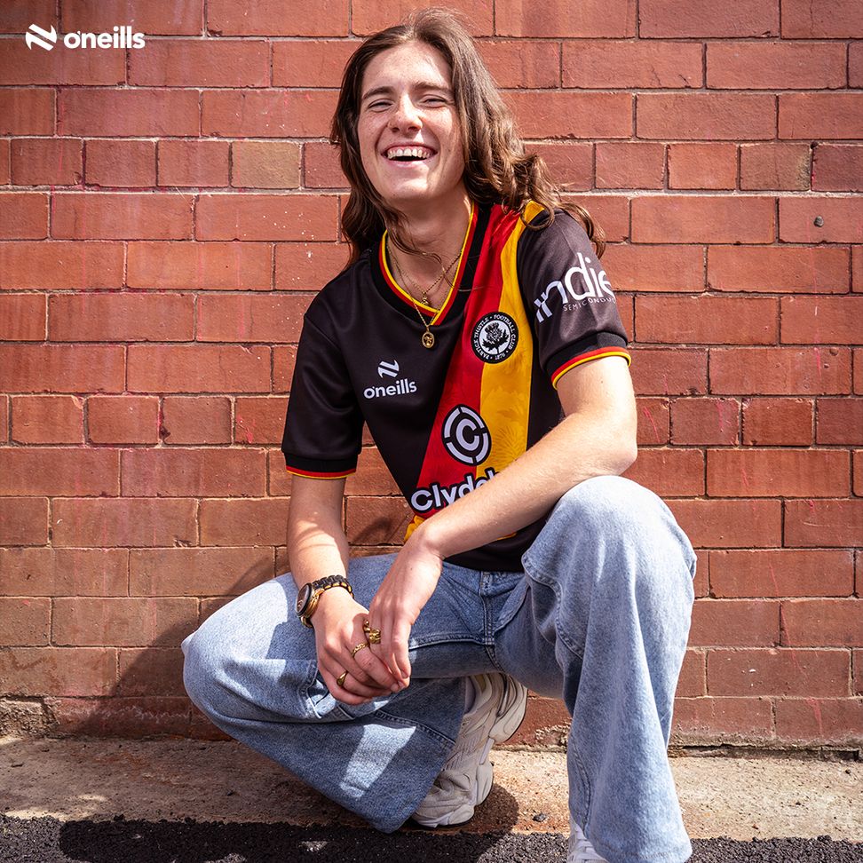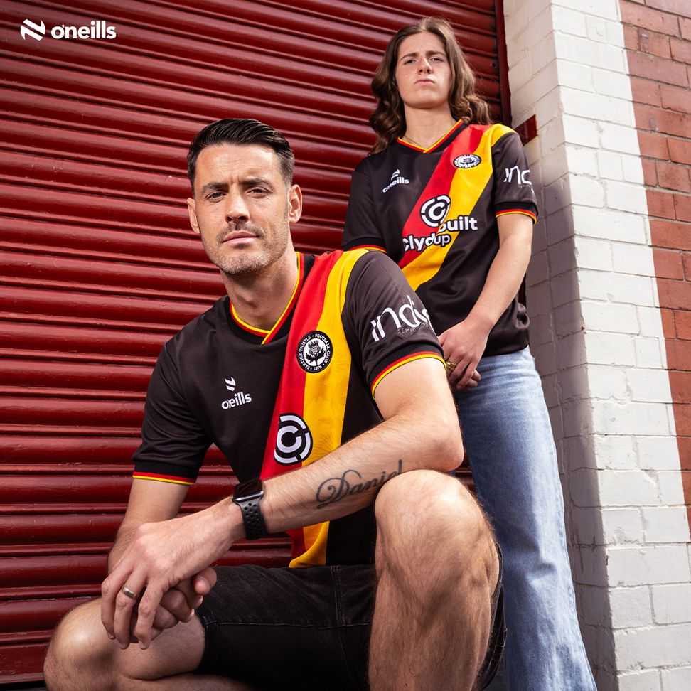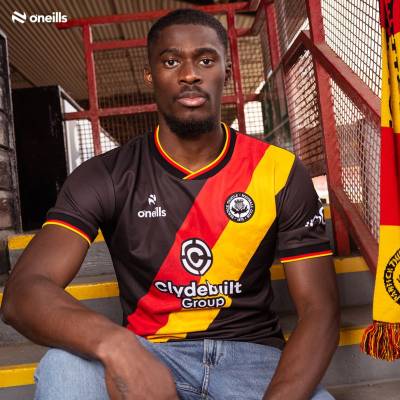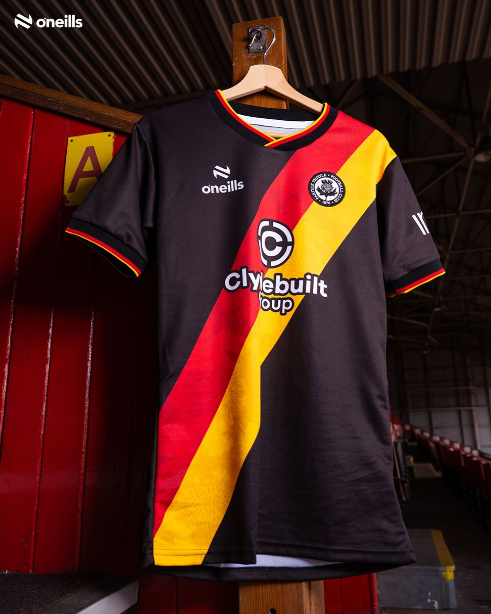 The new secondary-change O’Neills release for the Glasgow-based side is in black with white providing the partner/sponsor logos and the detailing on the crest, with familiar red and yellow featuring via the trim and - most prominently - the dual-coloured diagonal sash.