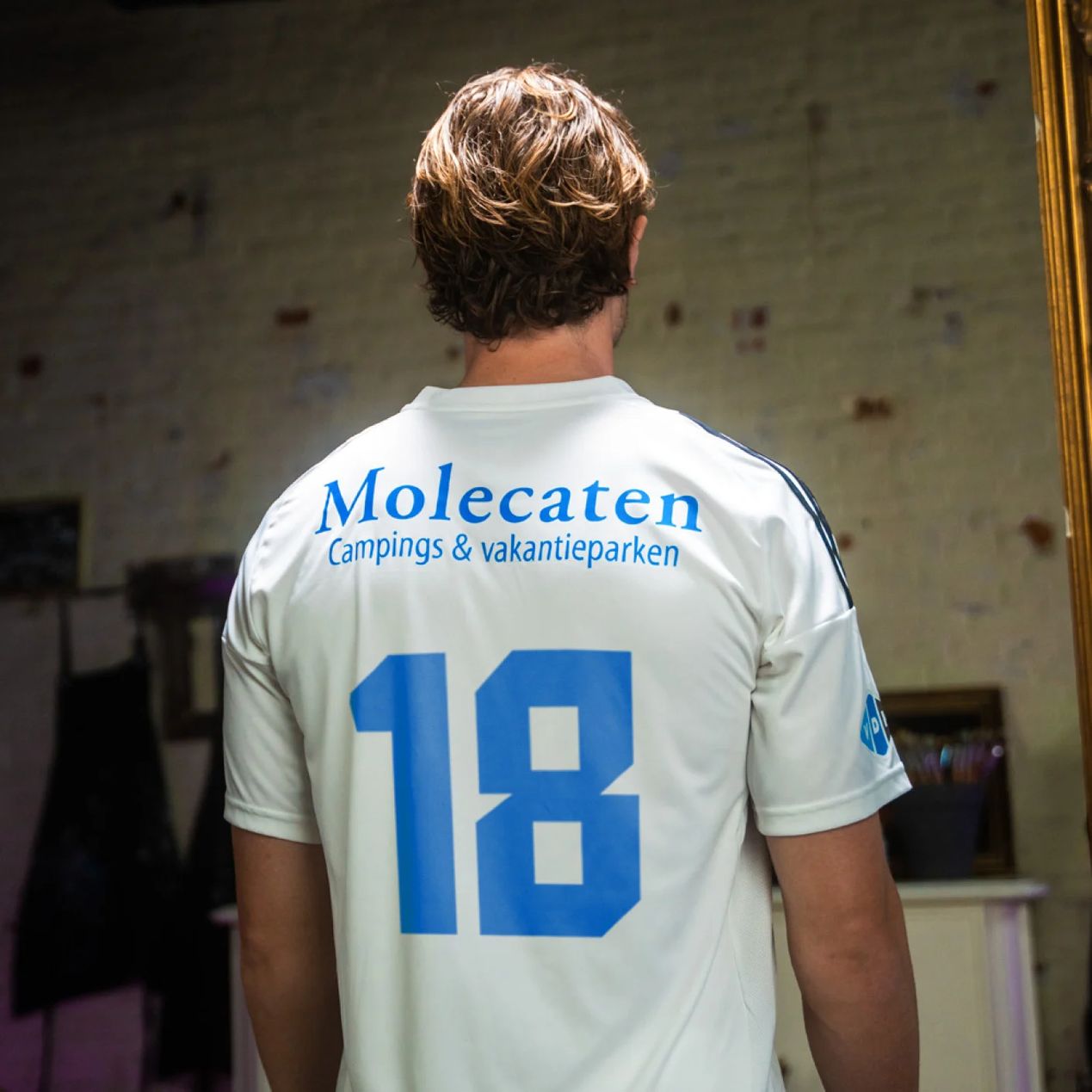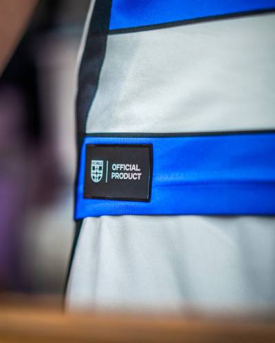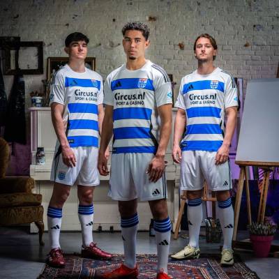The Dutch Eredivisie side’s new primary release from adidas sees the club’s blue and white horizontal stripes incorporated into the German supplier’s latest constructional template, with said stripes divided with black and black also used for most partner/sponsor logos/branding and trim.