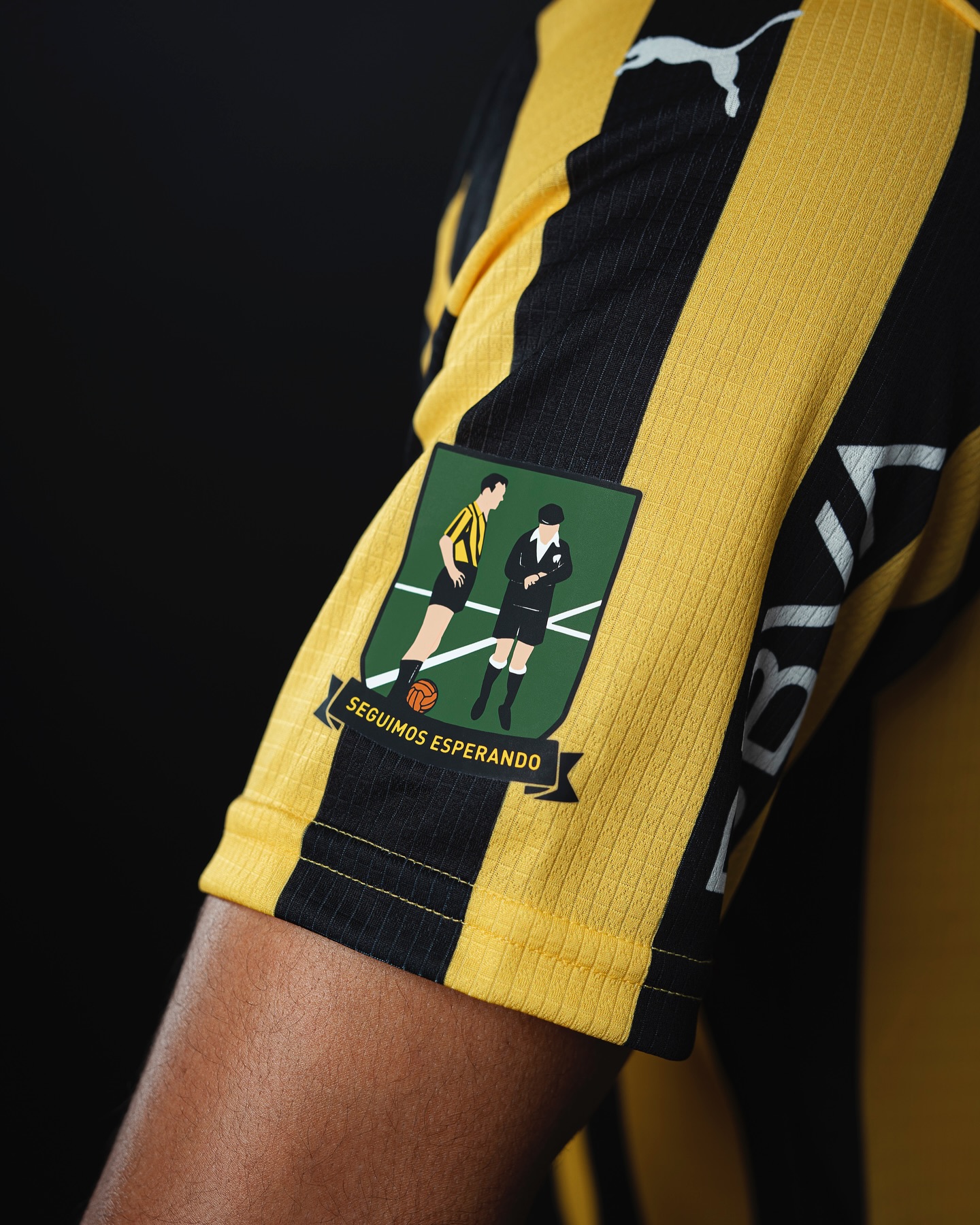 The latest Puma new release for 2024 boasts the Uruguayan Primera División giants’ famous yellow and black stripes, on this occasion with throwback stylings - including an intriguing collar effect featuring superfluous buttons - and this is to honour the 75th anniversary of Peñarol’s “Clásico de la fuga” (“Escape Derby”), win, when archrivals Nacional did not return for the second half of a game in which they found themselves 2-0 down in at the break.