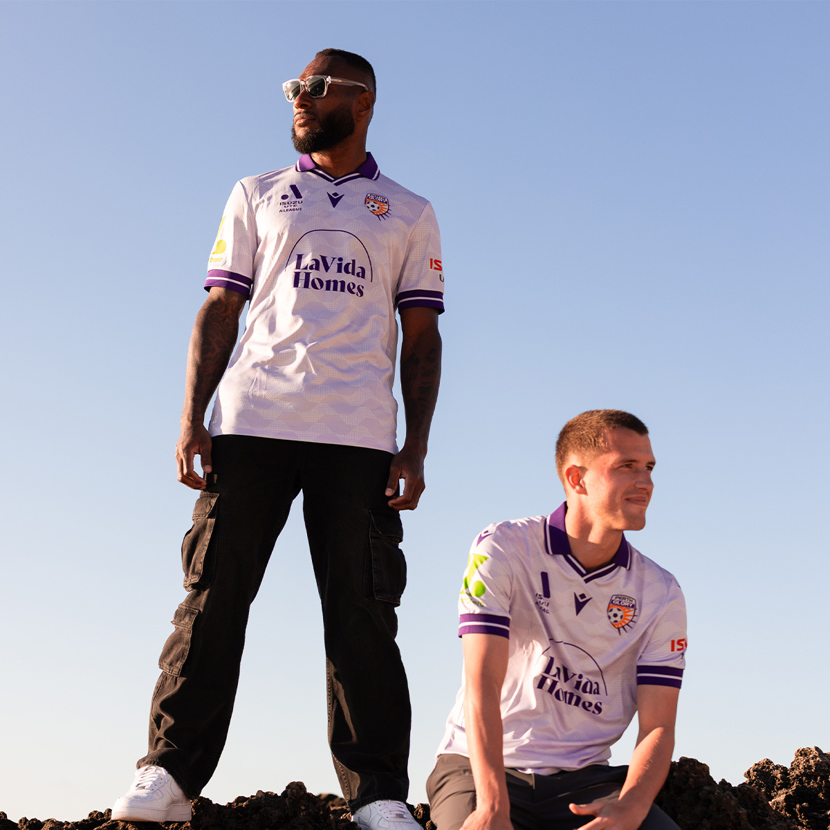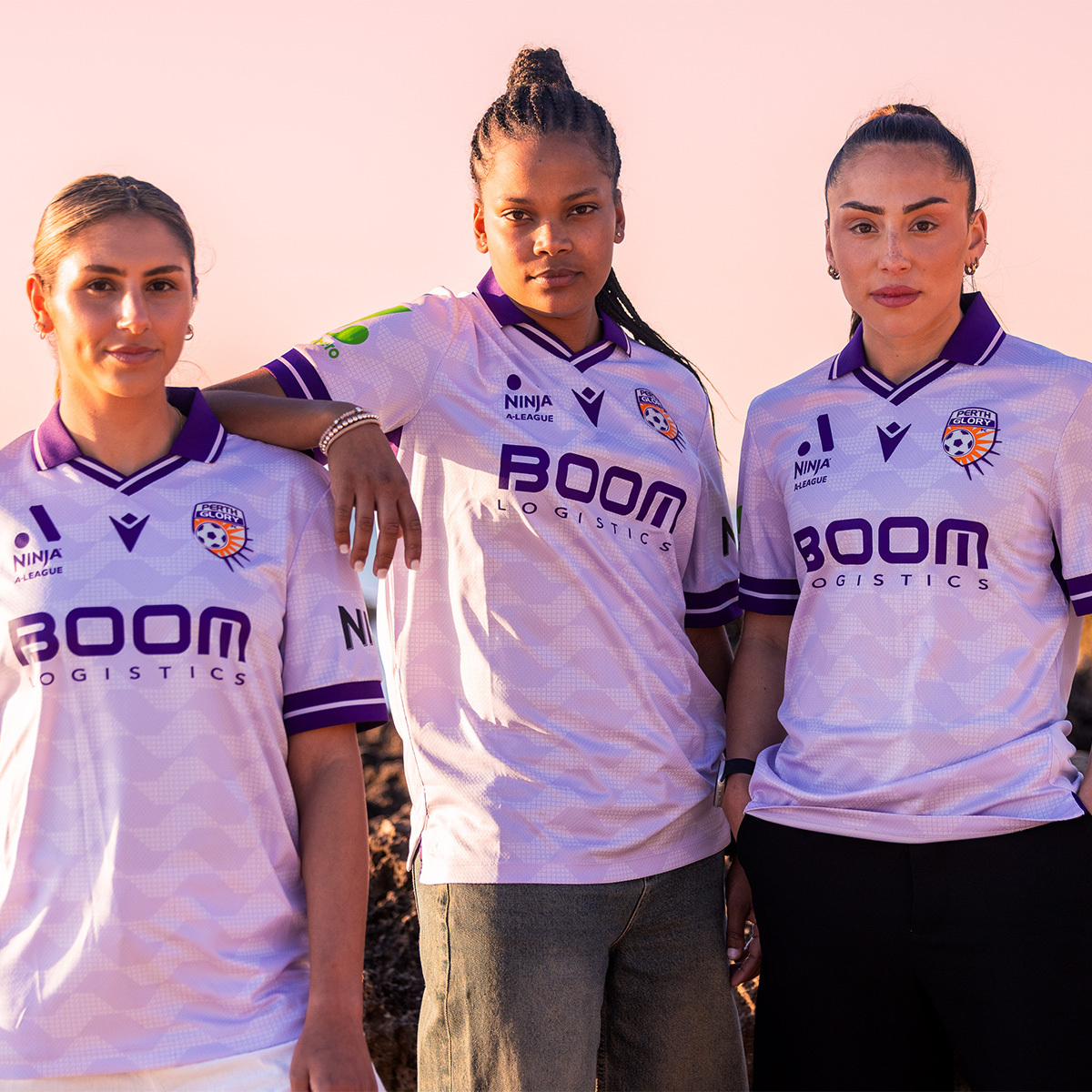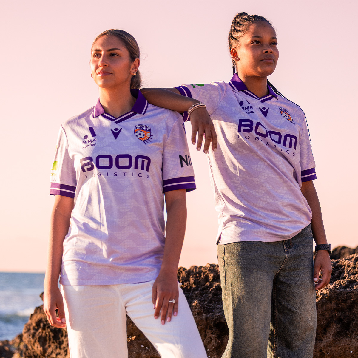 The front of the men’s version carries LaVida Homes branding, while the women’s edition features Boom Logistics. Additional sponsors include Isuzu UTE and Ninja on the sleeves. The Perth Glory crest is applied in textured silicon to improve visibility and longevity. The full away kit will be completed with purple shorts and socks that continue the trim detailing seen on the shirt, creating a consistent look for the new season.