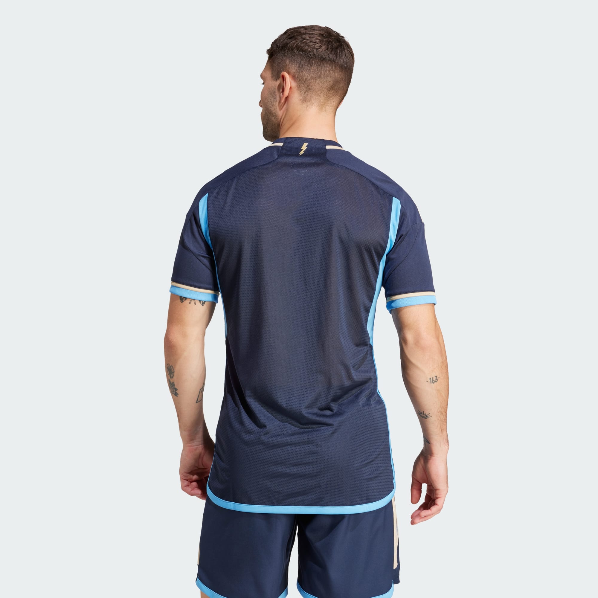 In crafting the 2024 "XV" kit, the Union Creative Collective (UCC), in collaboration with Adidas, has reimagined the central stripe by incorporating the Union’s distinctive signal blue. This refreshed design symbolises the evolution of both the team and the league over the past 15 years. The central motif, inspired by the Union's usual playing formation, features dynamic, jagged patterns that could represent a snake, river, or lightning bolt – all key elements of the Union's identity and narrative.