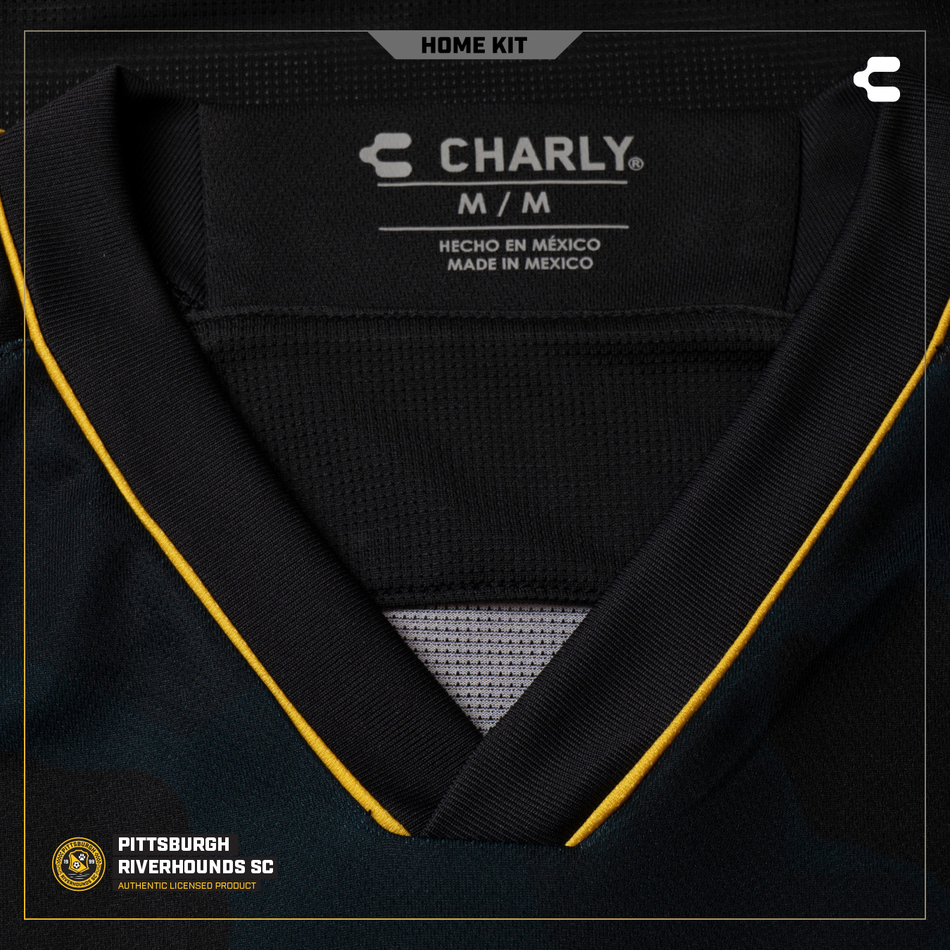 This is the new Pittsburgh Riverhounds Soccer Club Home shirt by Charly.