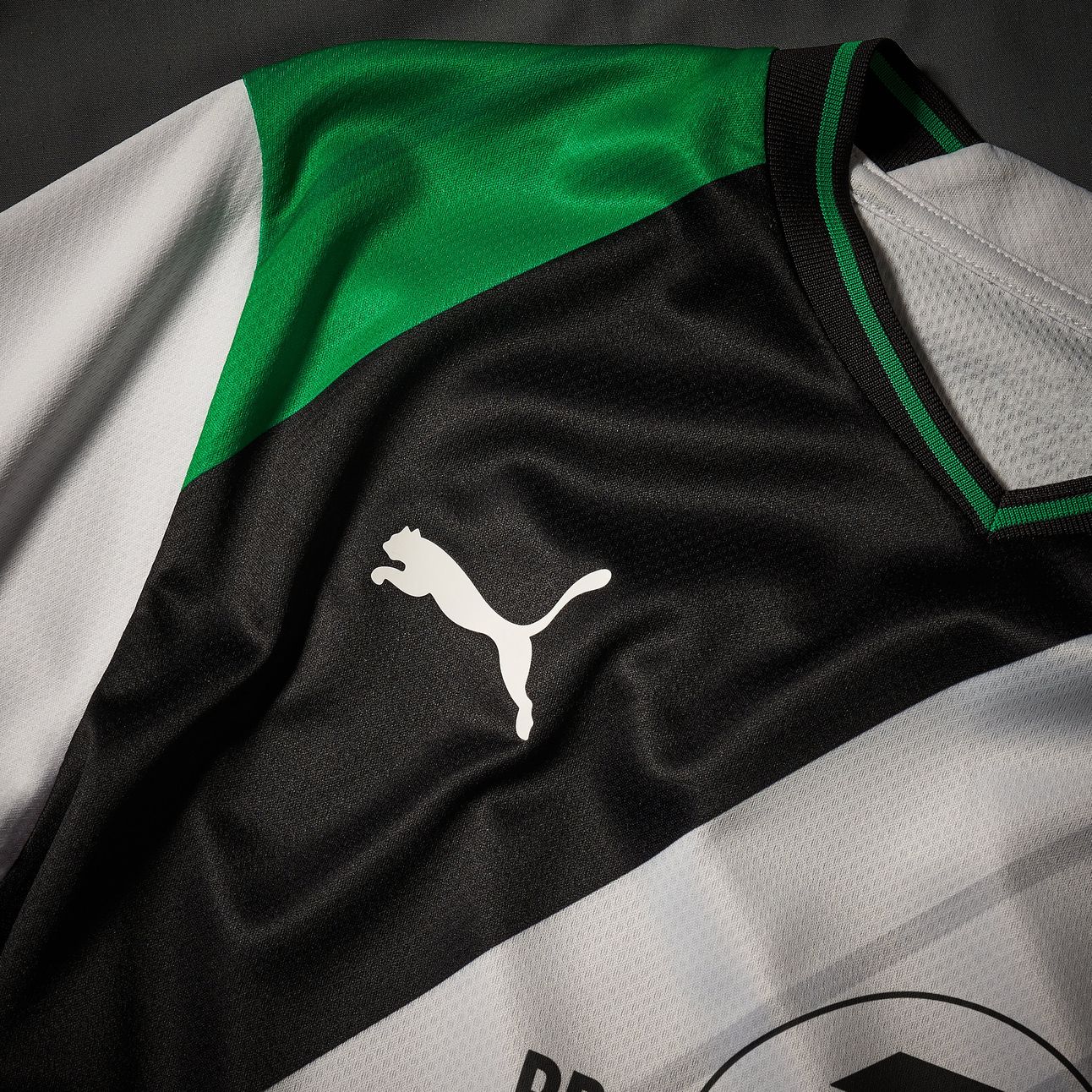 The crest, Puma cat logos and main, centrally placed sponsorship print are all kept to monochrome, while a little extra colour is added with the upper back partner exposure.