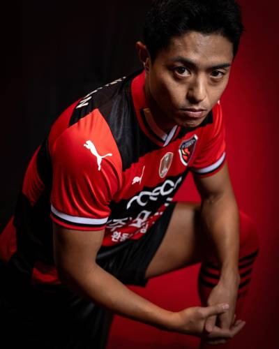 The crest is in full colour, the kit is completed with black shorts and red socks and a version of the shirt with fewer commercial additions will be worn in the AFC Champions League.