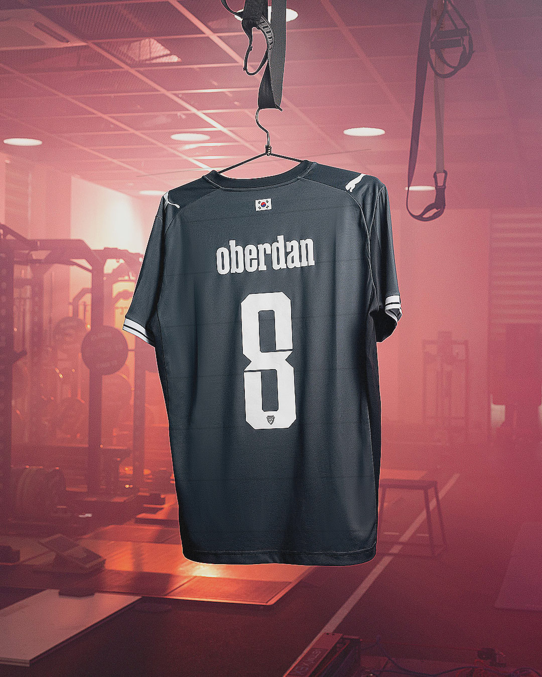On the reverse, player names appear in lowercase lettering, with white numbers printed beneath. South Korea’s national flag, the Taegeukgi, is placed under the collar to emphasise national pride.