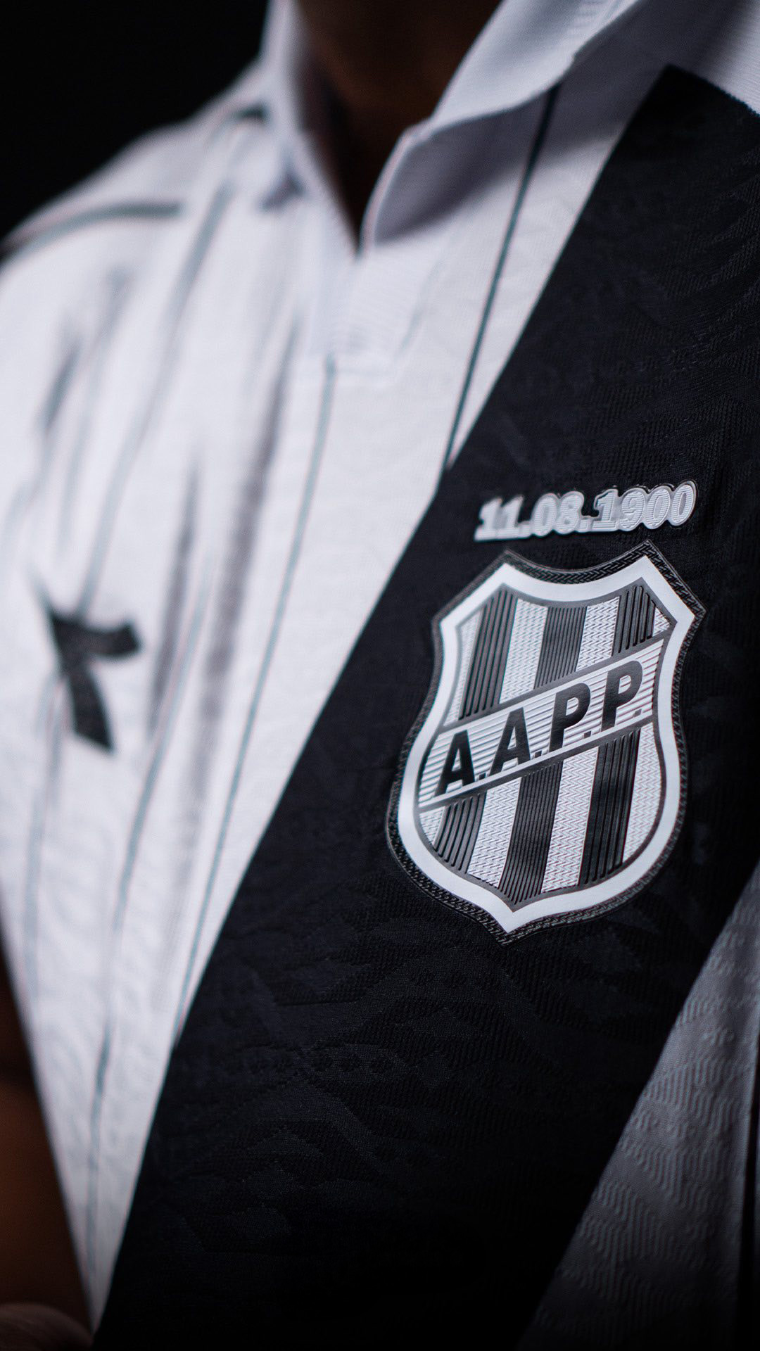 Additional detailing appears on the sleeve cuffs, which display the text “És amada Ponte Preta” (“You are beloved Ponte Preta”), taken from the club anthem. The jacquard structure also continues within the black sash, adding subtle texture to the central panel. The new Ponte Preta football shirt will be completed with matching white shorts and socks as part of the full match uniform for the 2026 Brazilian football season.