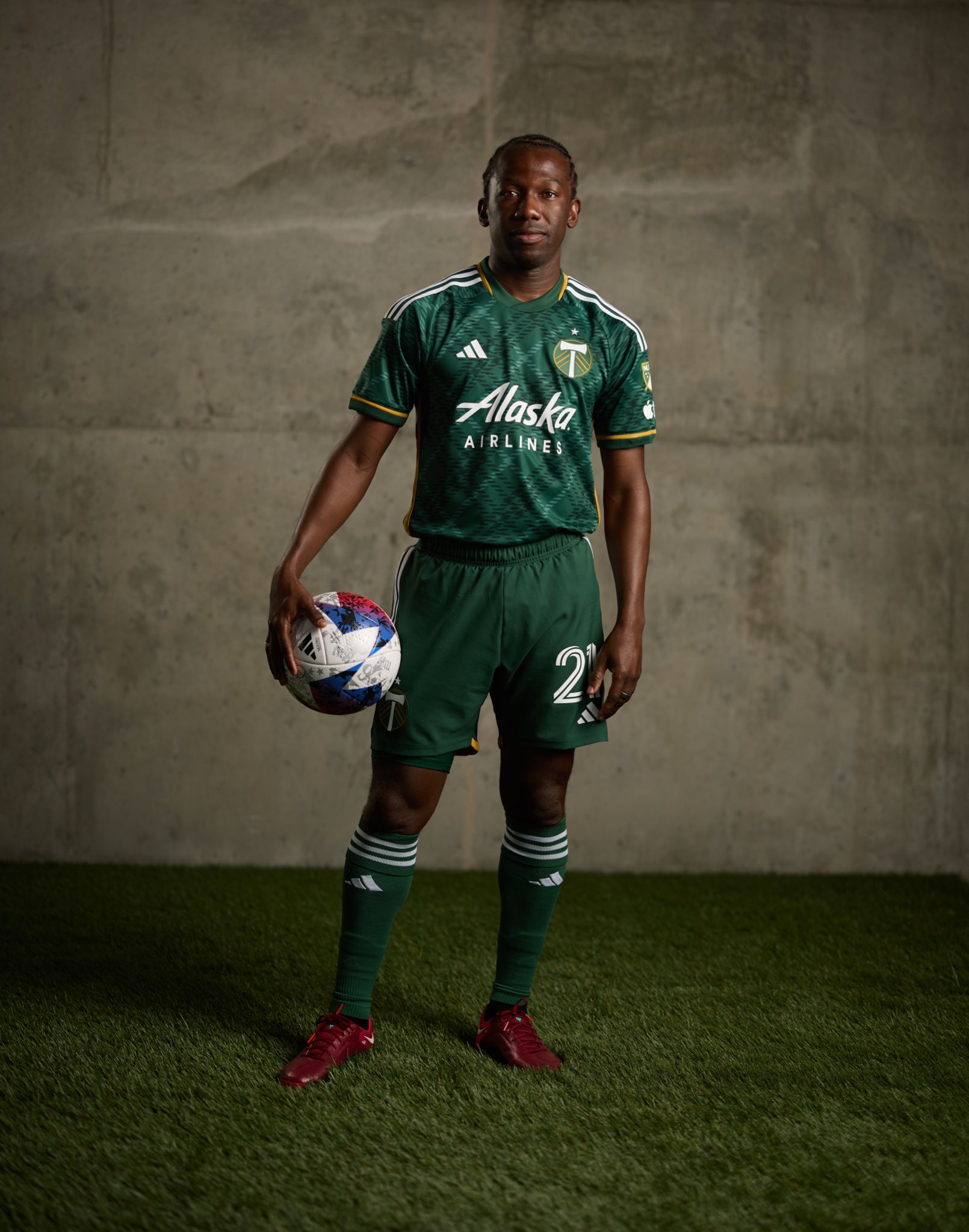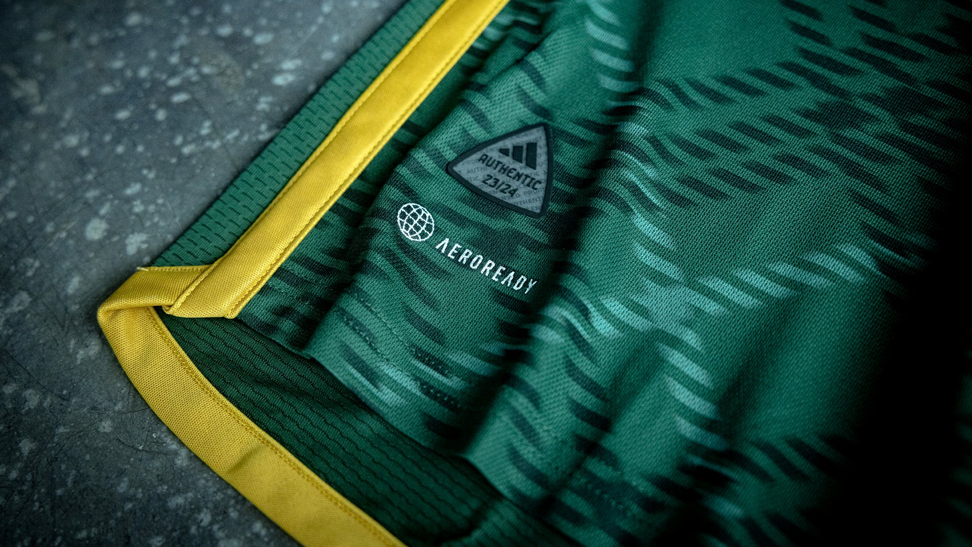 The 23/24 adidas kit flaunts a plaid design incorporating ponderosa, shadow green, and gold to symbolize the strong bond between the team and the community.