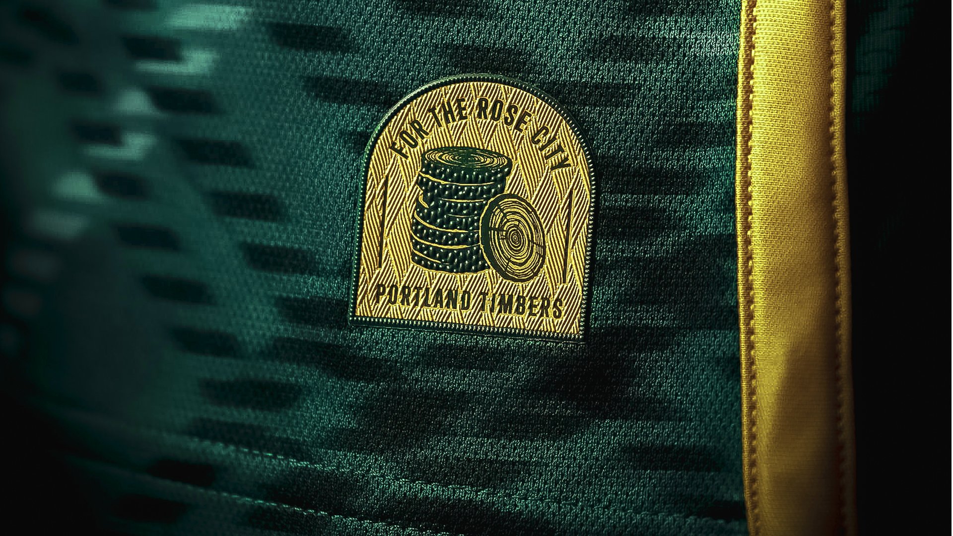 The inside of the collar embraces the Timbers name with a two-person crosscut saw, a representation of teamwork. The jock tag displays one of the club's longest traditions, slices of the victory log, enclosed by the words "For the Rose City" and "Portland Timbers".