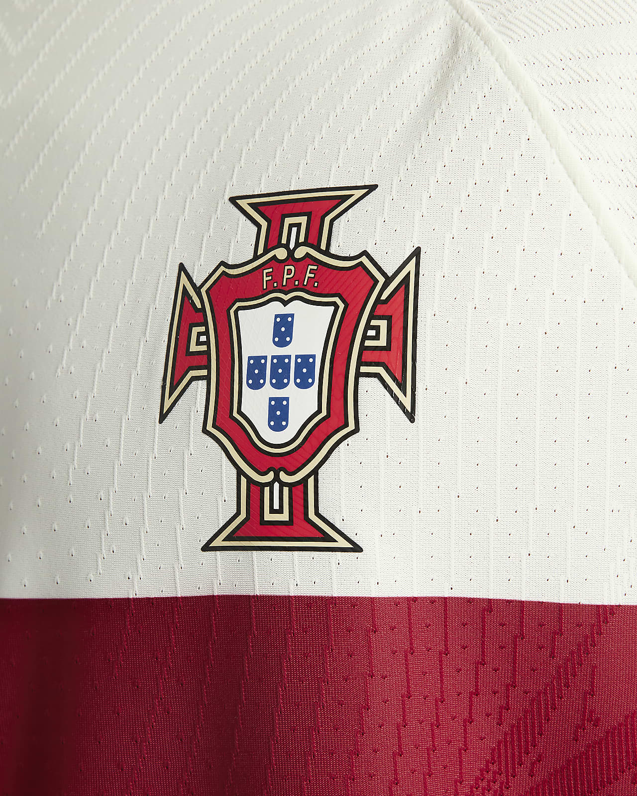 The Nike release is in white with a band suggesting the Portuguese national flag - in red and green - running horizontally on the trunk.