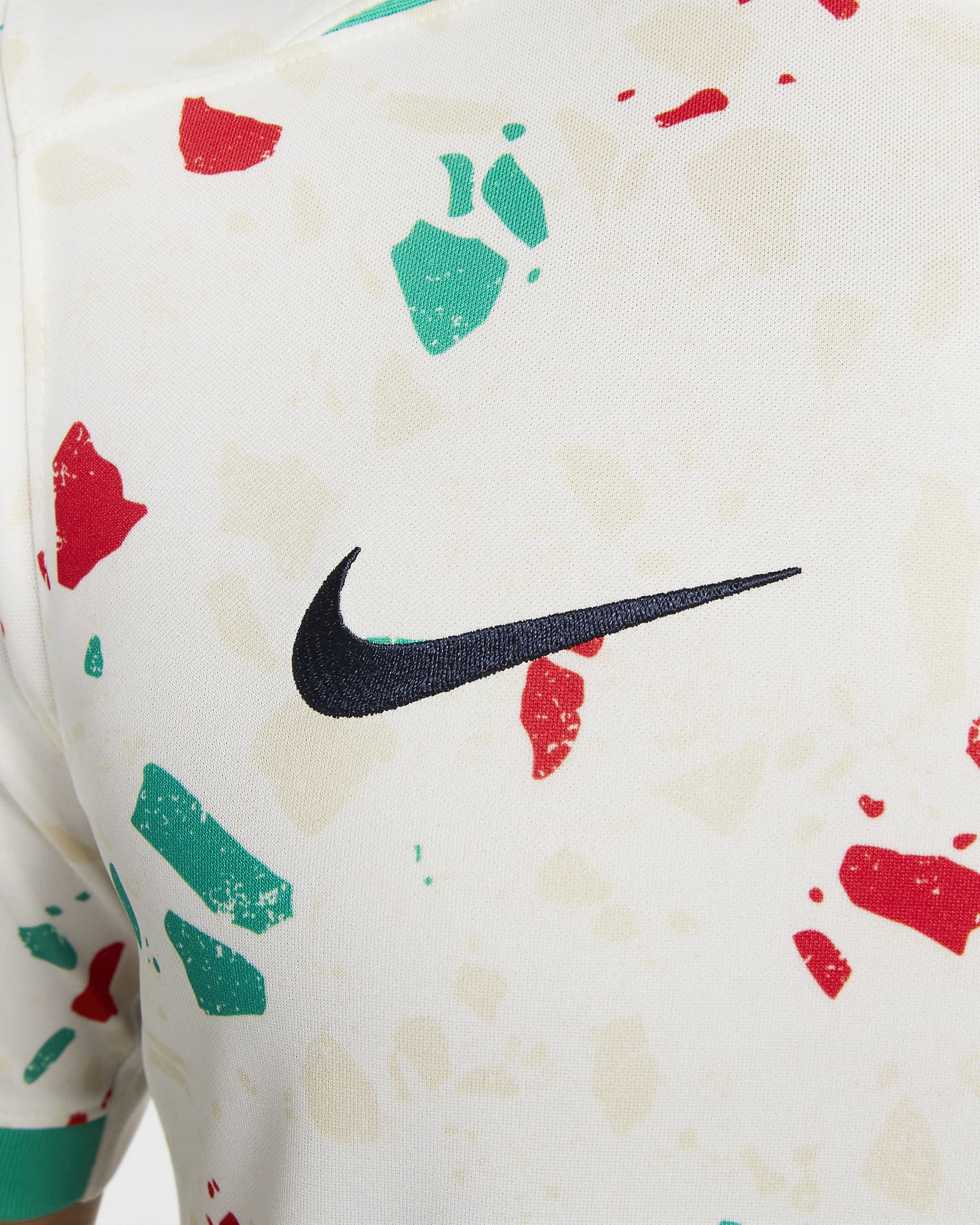 The Portugal 2023 Women's Away jersey celebrates the artistry of football with its captivating design.