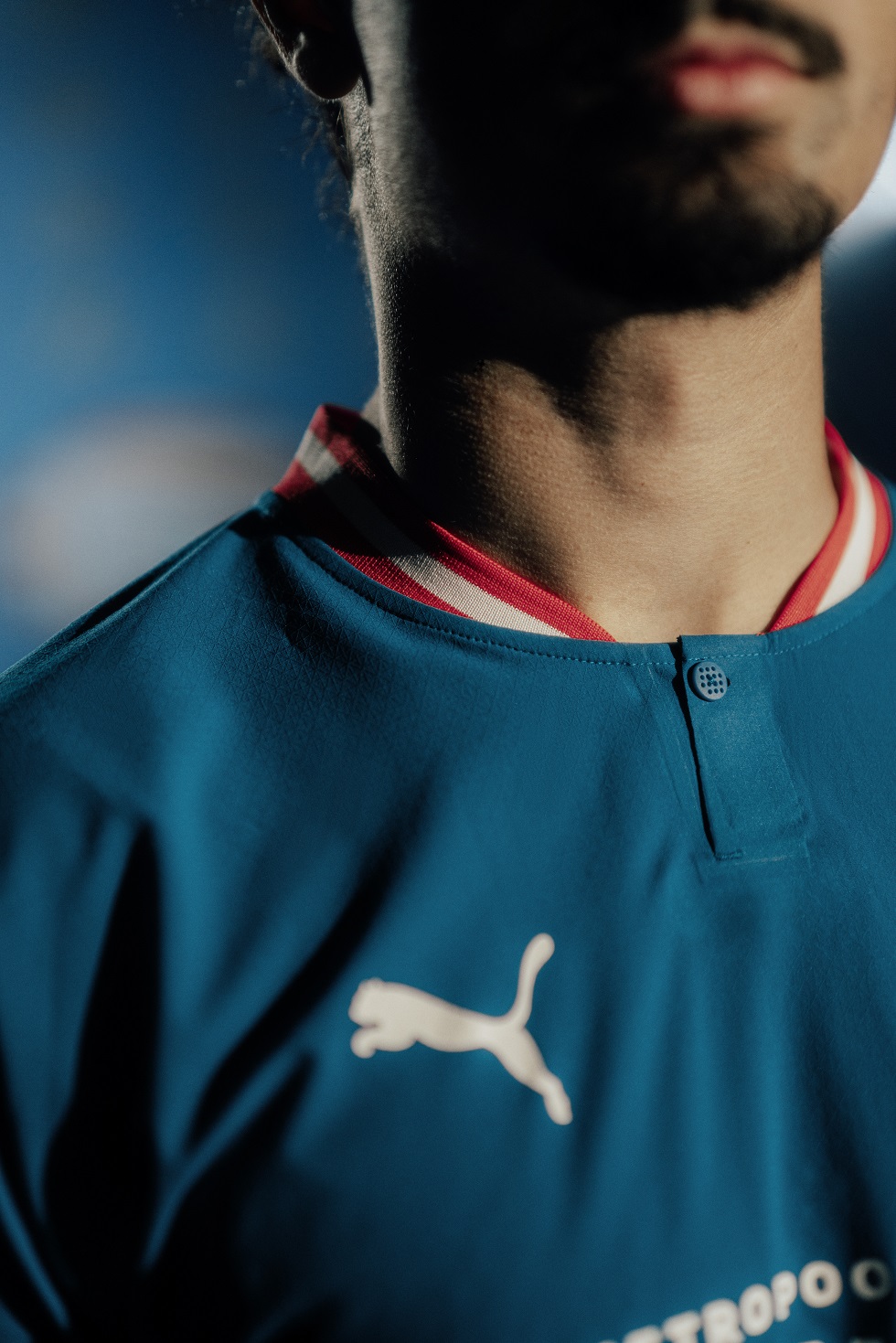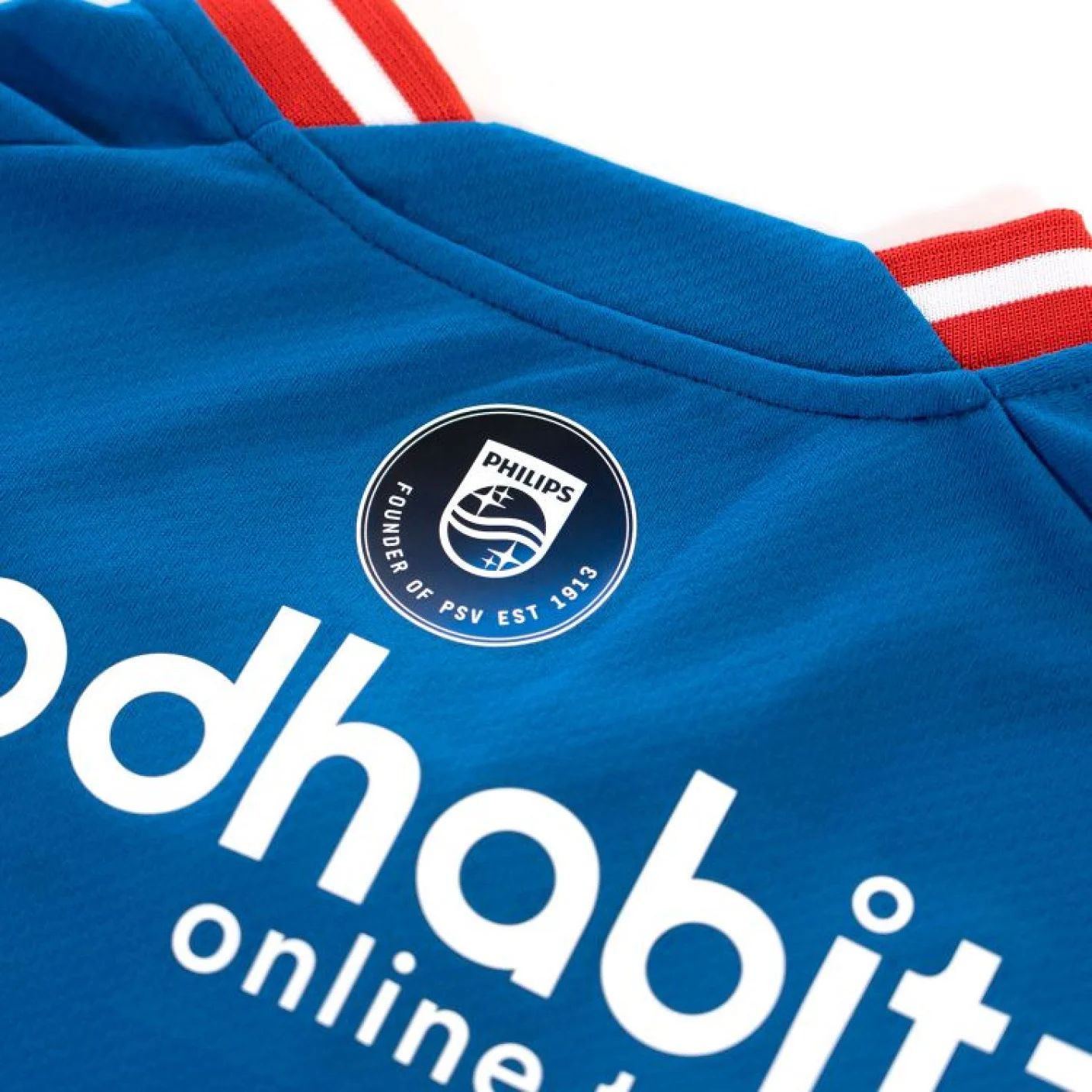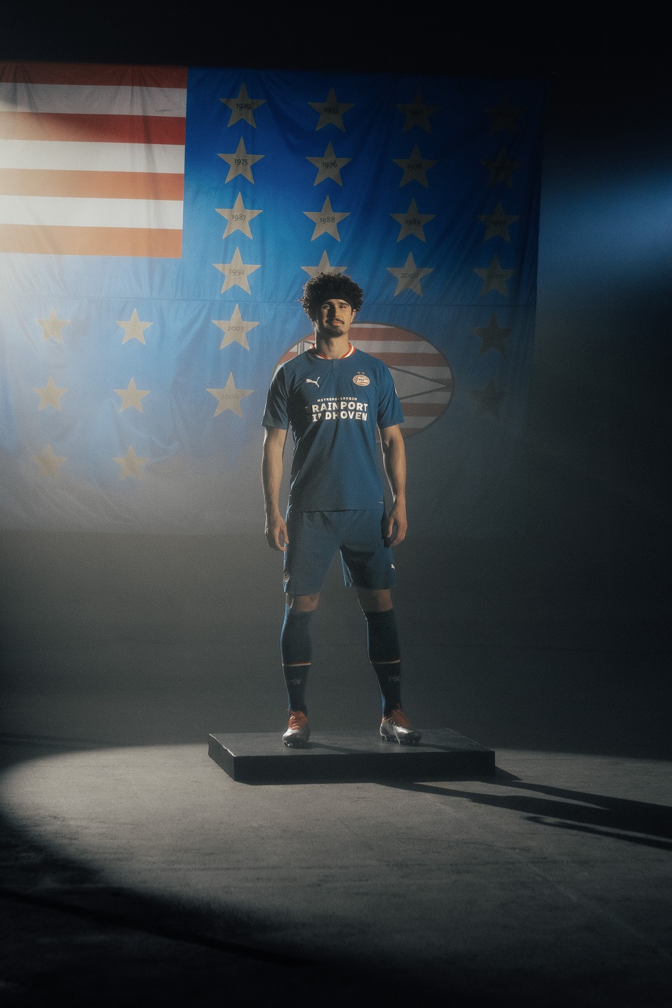 The new secondary-change design from Puma is in “Brilliant Blue” - inspired by the flag referred to in the PSV song and the Third shirts worn in the club’s prosperous 1987-88 and 2014-15 seasons - with white and red embellishment.