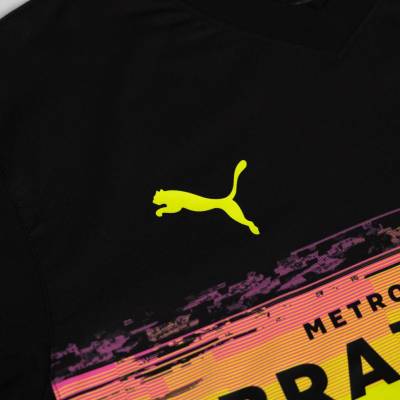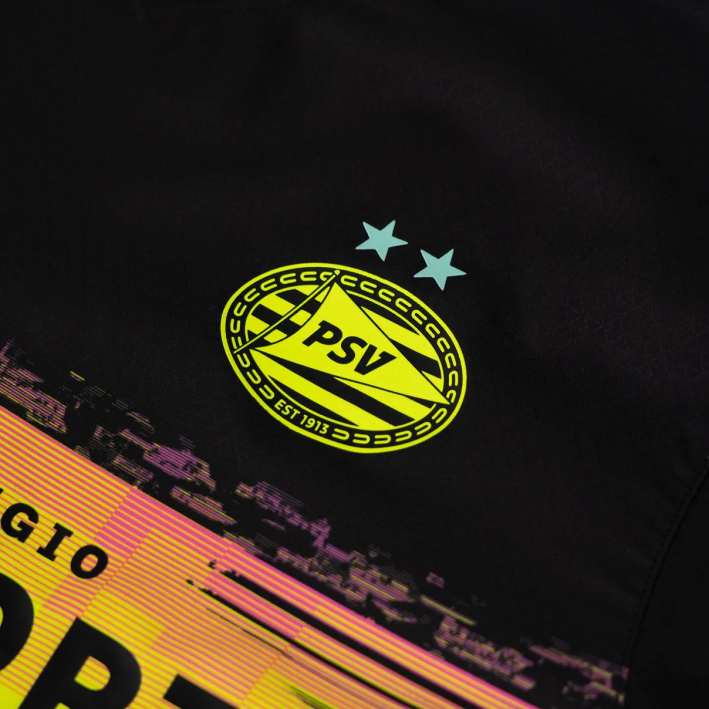 The Eindhoven-based club’s new primary-change release from Puma is in black with colourful - pink, blue, yellow, green… - embellishment intended to evoke the “Philips circle pattern” television test card that “Lampen”’s electronics company founding organisation created.