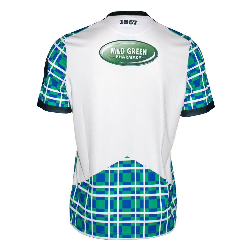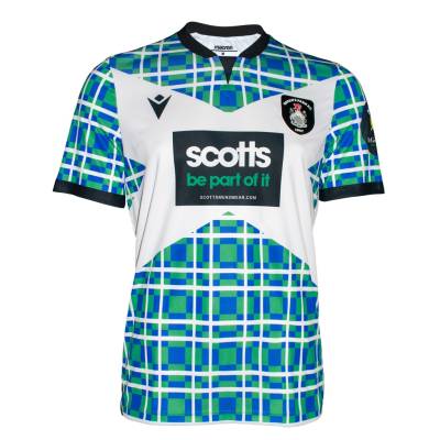 The nominally secondary change design for 2022-23 is produced by Macron and boasts a stylised tartan effect and saltire flag element to the chest.