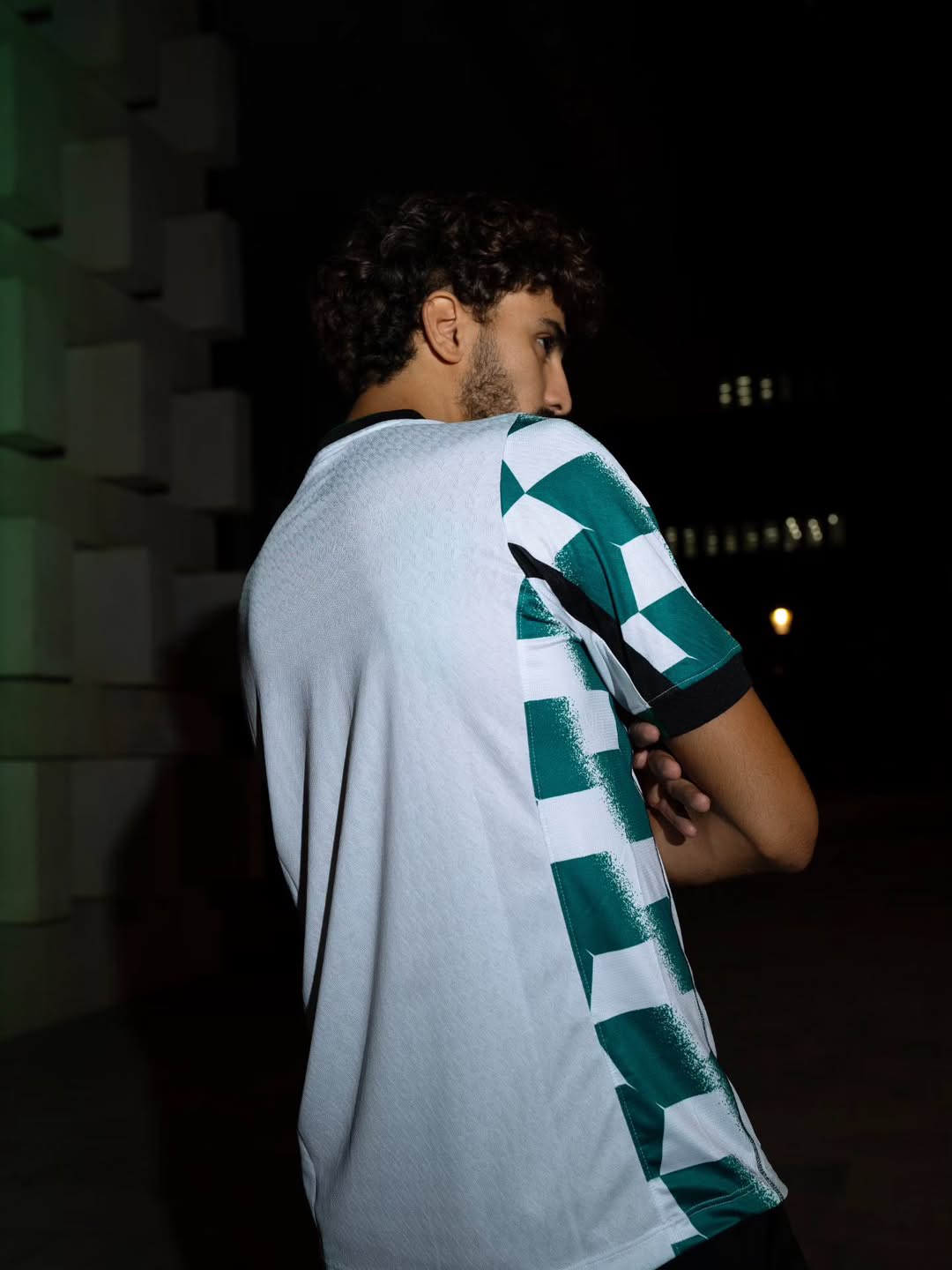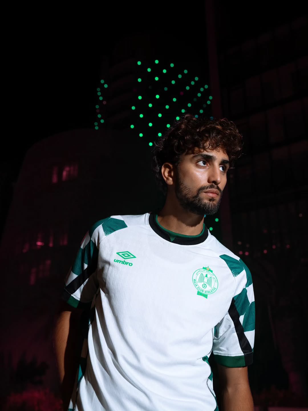 The back of the jersey continues in plain white, providing contrast to the patterned sleeves. Green shorts and white socks are expected to complete the away kit for the campaign. The design will be worn during domestic and continental fixtures as Raja take to the road in the 25/26 season.