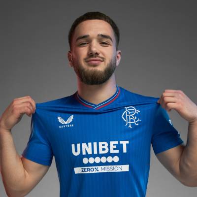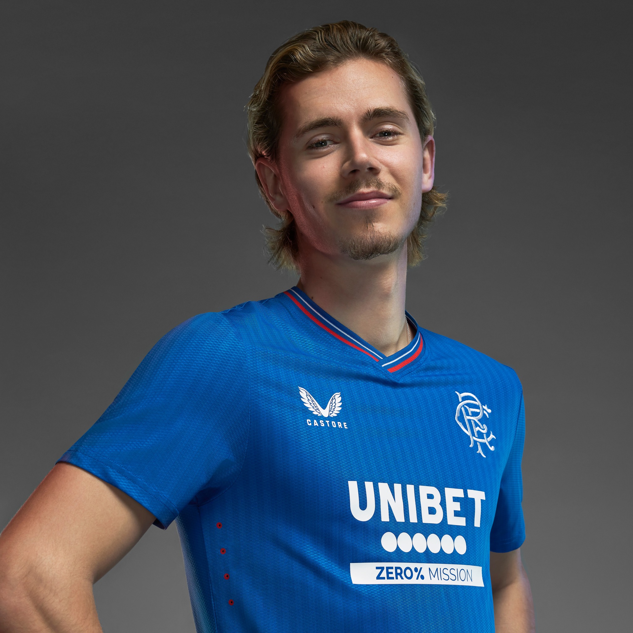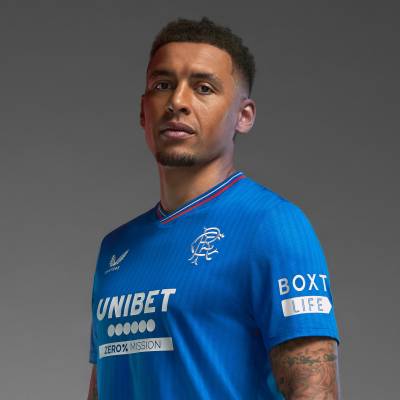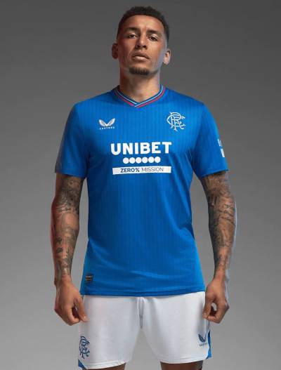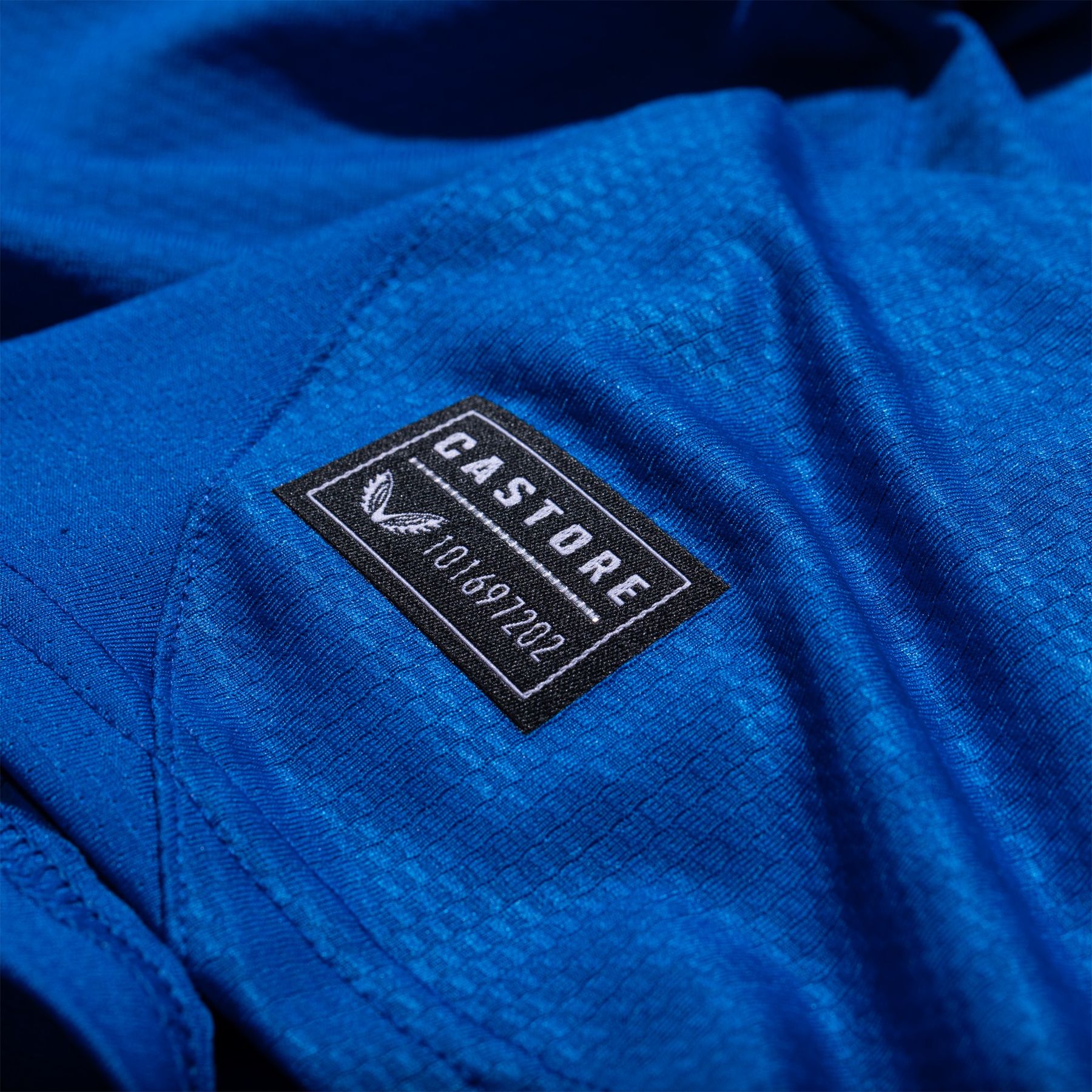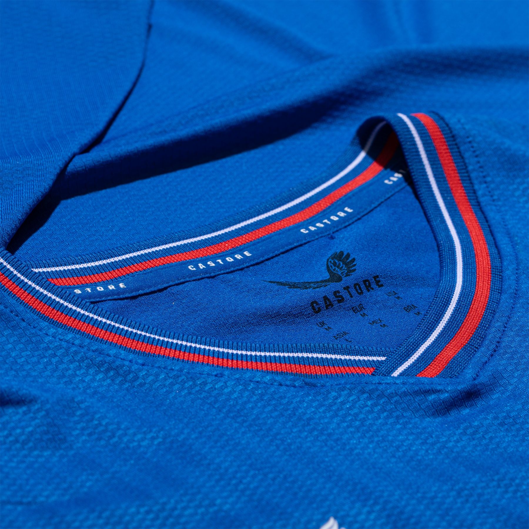 The new primary Castore release for the Glasgow-based Scottish Premiership side is in the famous royal blue with white-and-red trim to the overlapping v-neck.