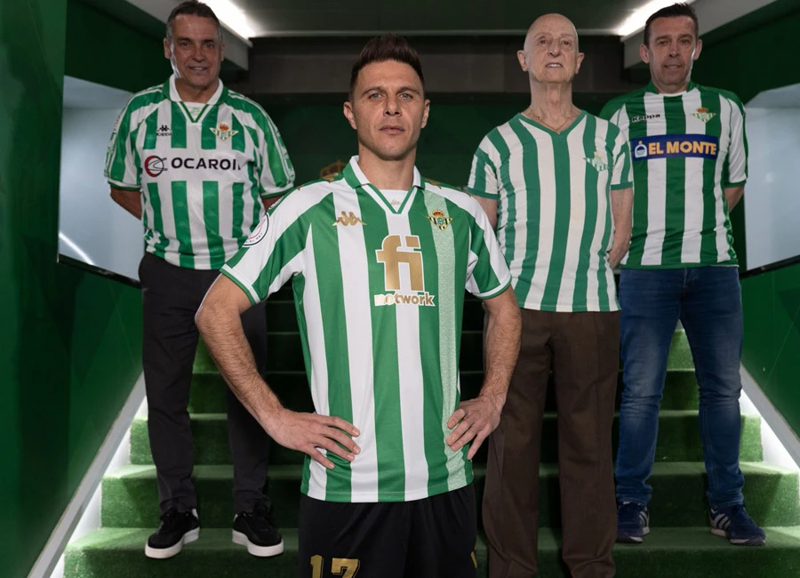 The Seville-based Spanish side’s Kappa creation for the occasion features the famous green and white stripes but nods to shirts from the past in the design.