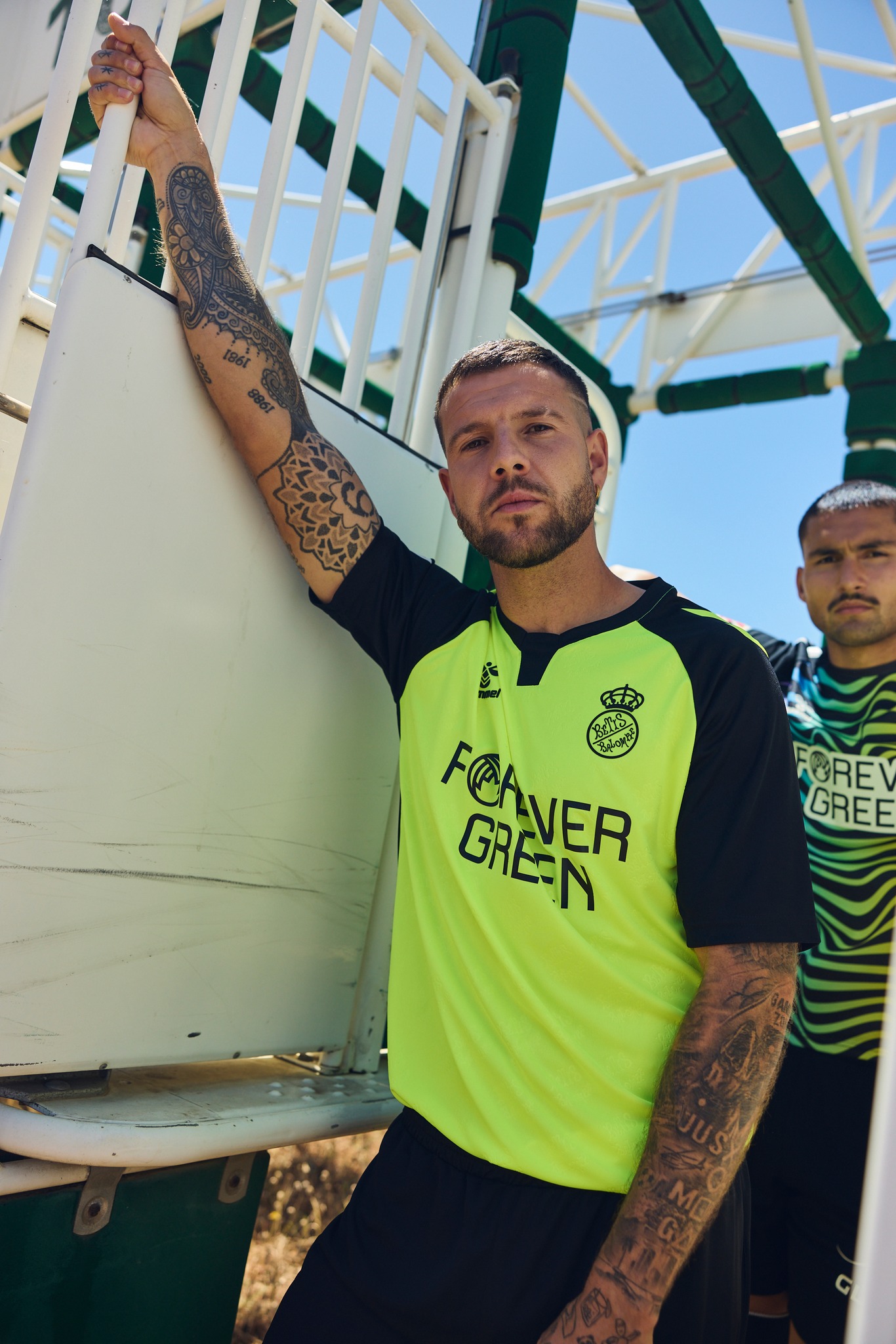 The new Hummel primary-change release for Los Verdiblancos sees another nod to the colours adopted when the club, in their current guise, were formed in 1914, with this tribute to the black and yellow stripes taking the form of the lighter portion - the trunk - being in a fluorescent tone.