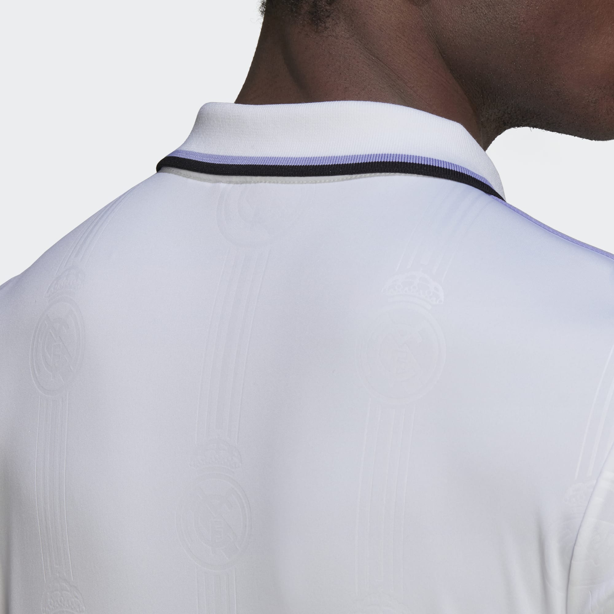 In addition, the tribute to the club's glory is also present on the inside of the button-down collar with a logo commemorating Real Madrid's 120th anniversary. Another feature is the white crest all over the shirt.