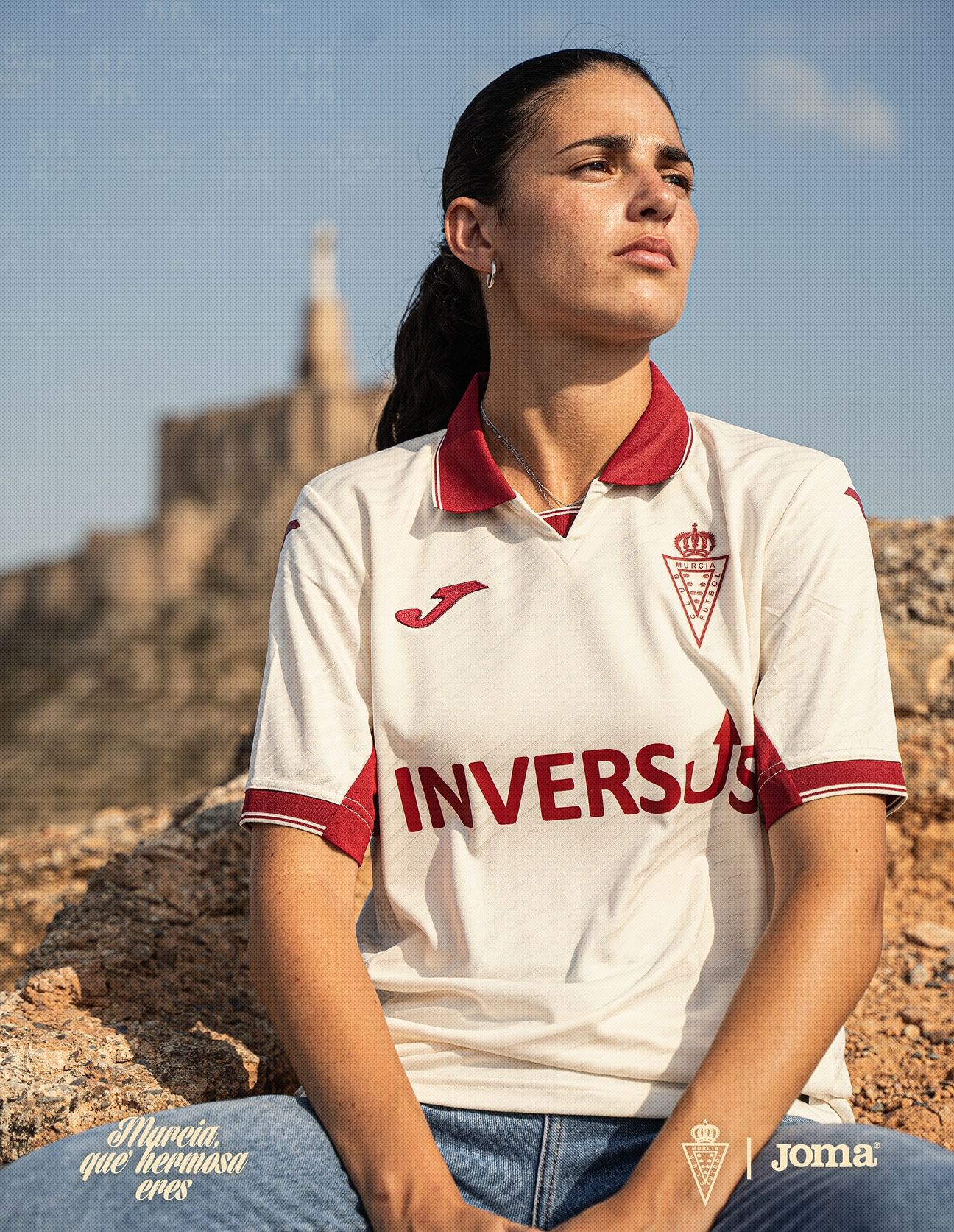 The design includes integrated graphics within the sleeves that reflect Murcia’s landscapes and heritage, aiming to connect the club’s history with its surroundings.