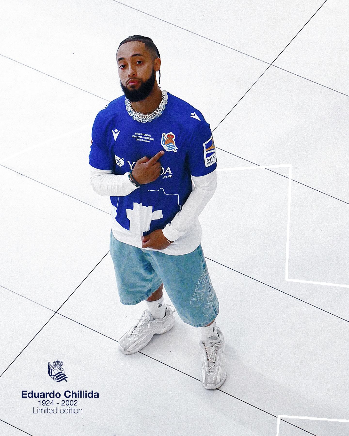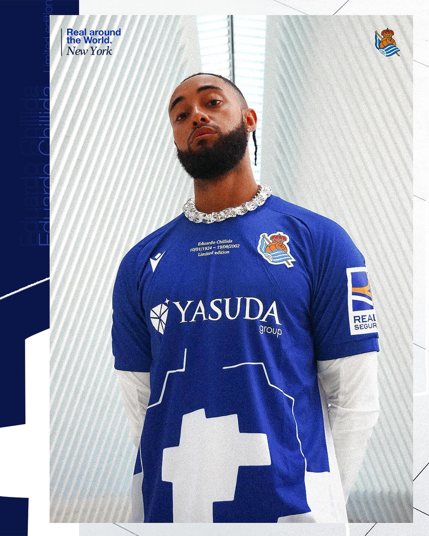 Chillida was born in Real Sociedad’s home of San Sebastián in 1924 and this centenary-celebrating latest 2024-25 release from Macron is in blue and white, depicts the artist’s “Abiagune II” paper work and will be sported in this weekend’s Spanish La Liga clash against Real Madrid.