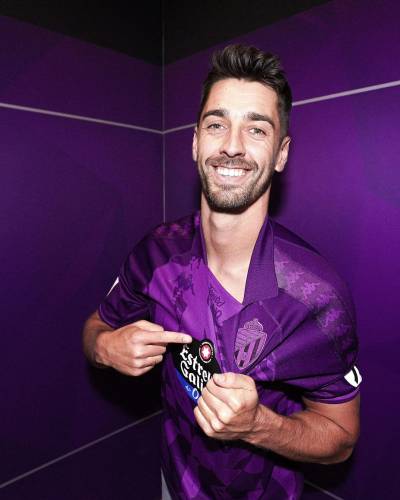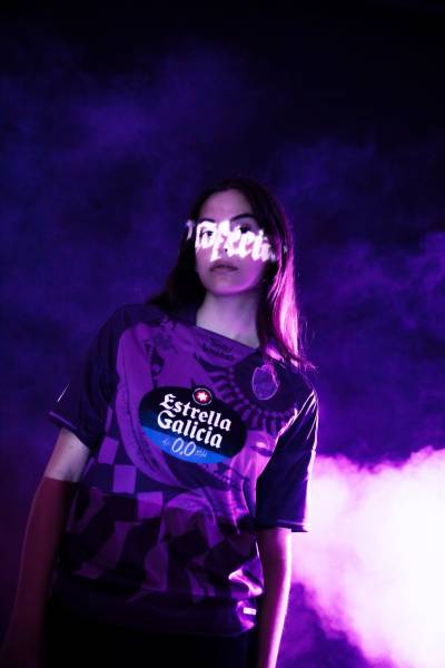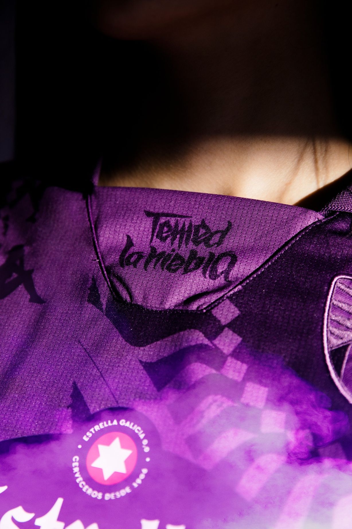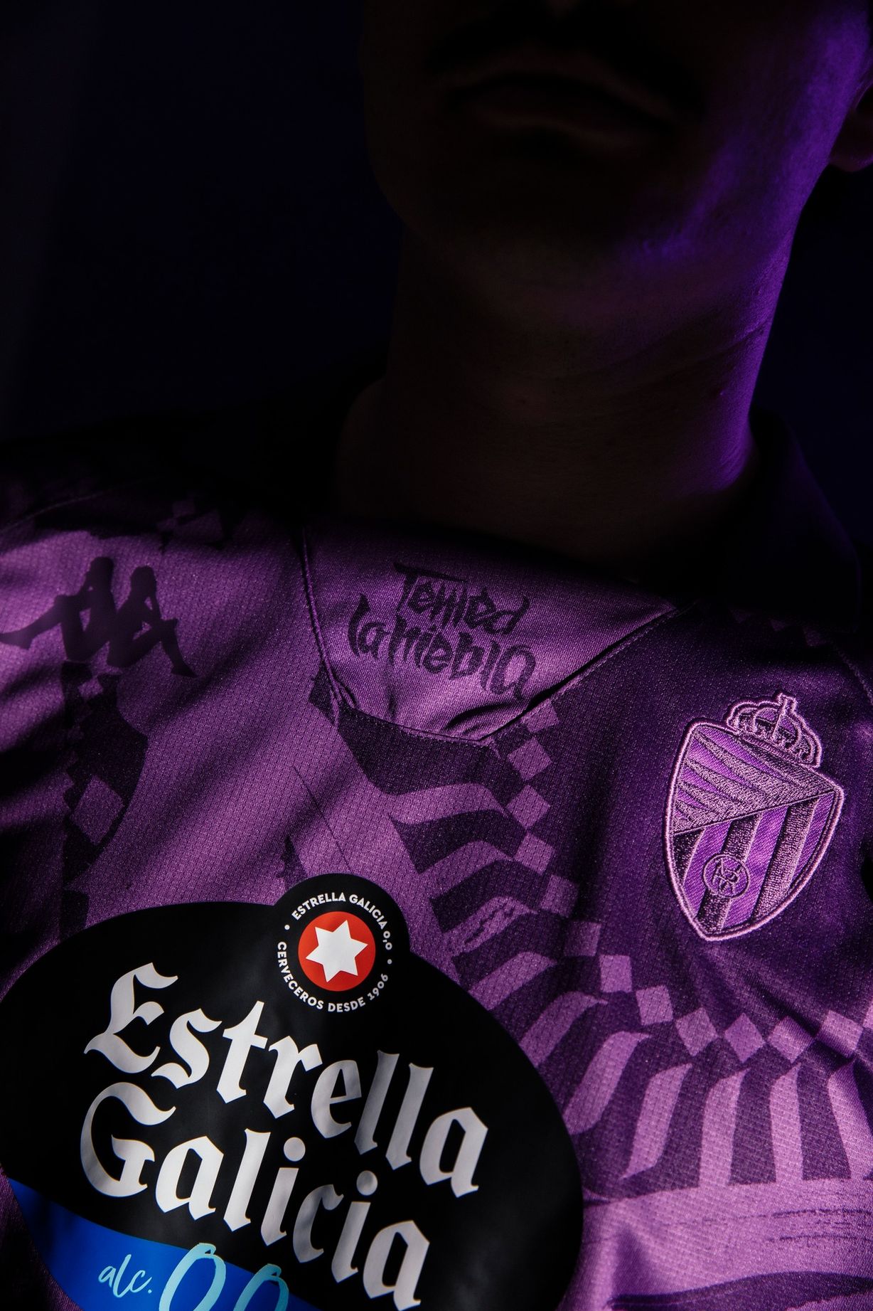 Marketed around the mythical concept of La Niebla (The Mist/Fog) that protects the city, the shirt is almost entirely in tones of the Spanish Segunda División side’s famous violet/purple, with even a tonal club crest mounted on the sublimated decoration contributed to by artist Félix Rodríguez.
