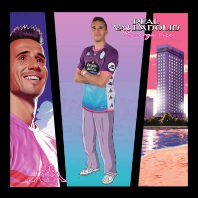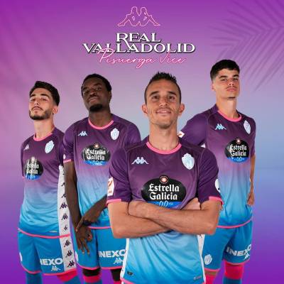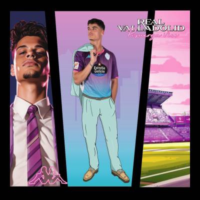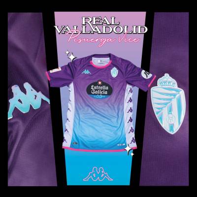 Inspired by the local Las Moreras beach beside the Pisuerga river, and Miami Vice, this is the Kappa 23/24 Third shirt for Spanish Segunda División side Real Valladolid Club de Fútbol.