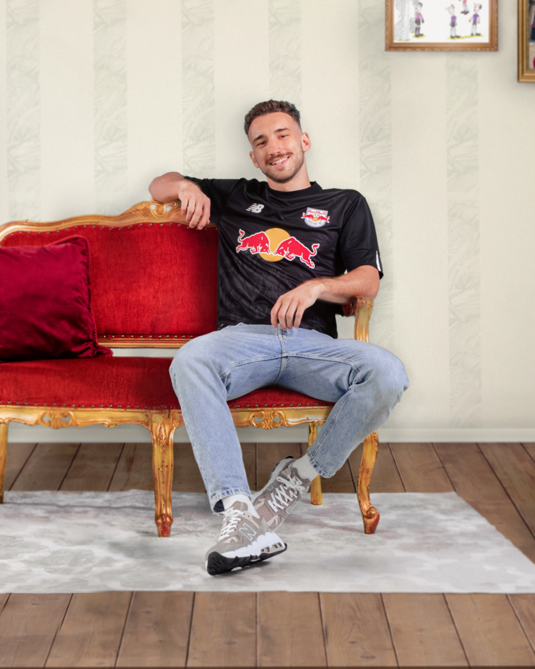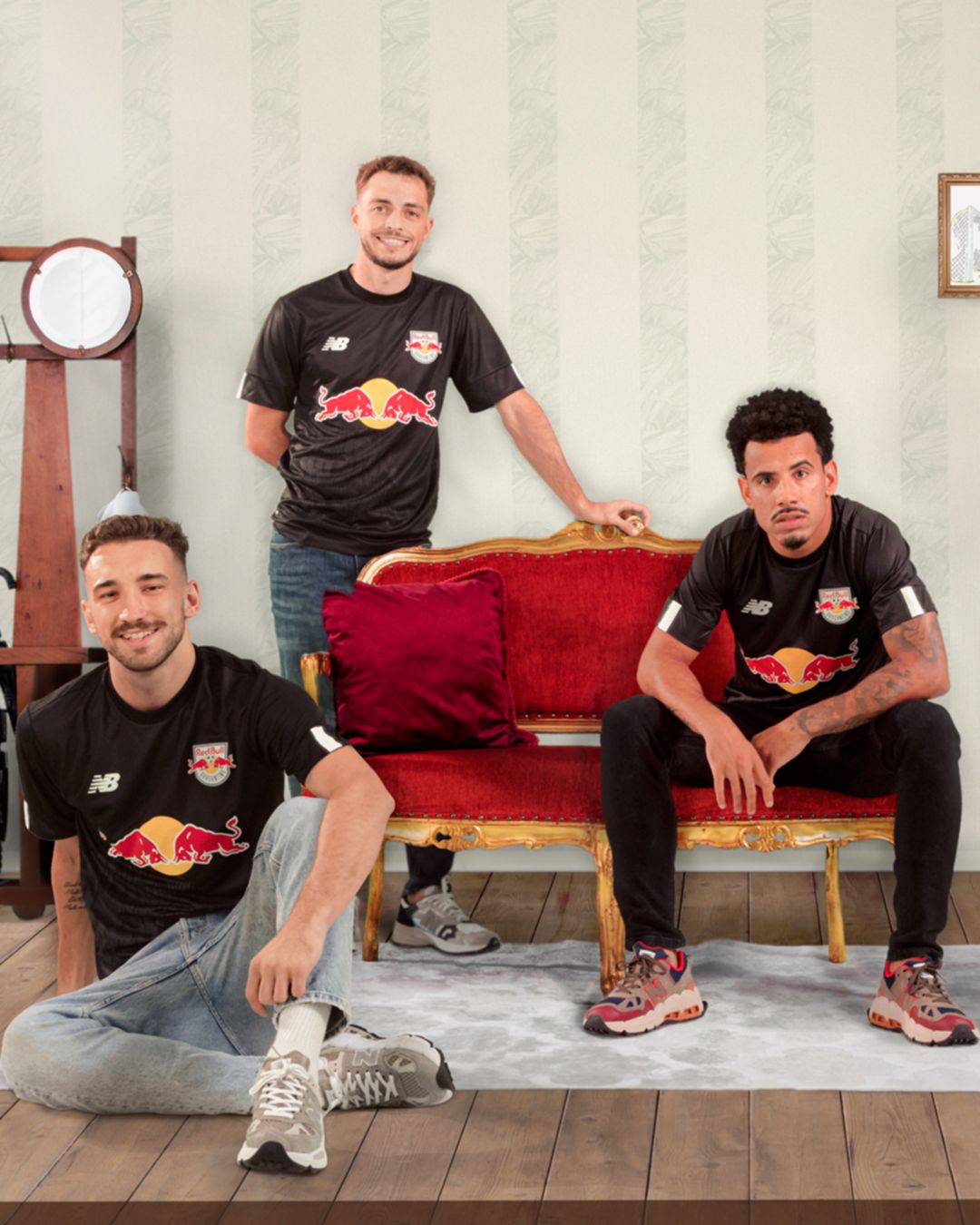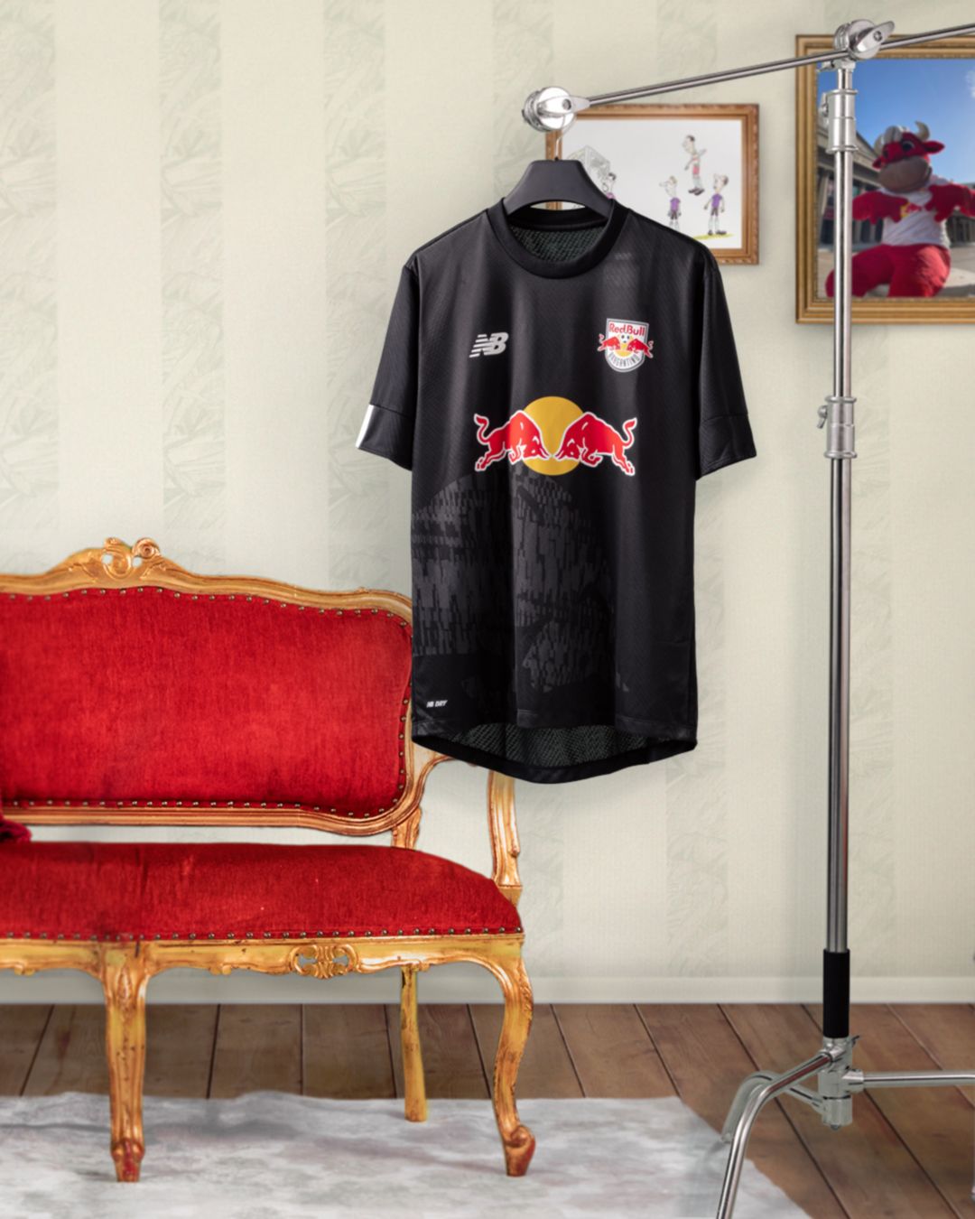A greyscale graphic low down on the “Movidos por Sonhos” (“Moved by Dreams”) release adds a flourish to the otherwise minimalist design, while the “NB” logo contrasts fully in white and the upper back boasts a “Red Bulls” legend.