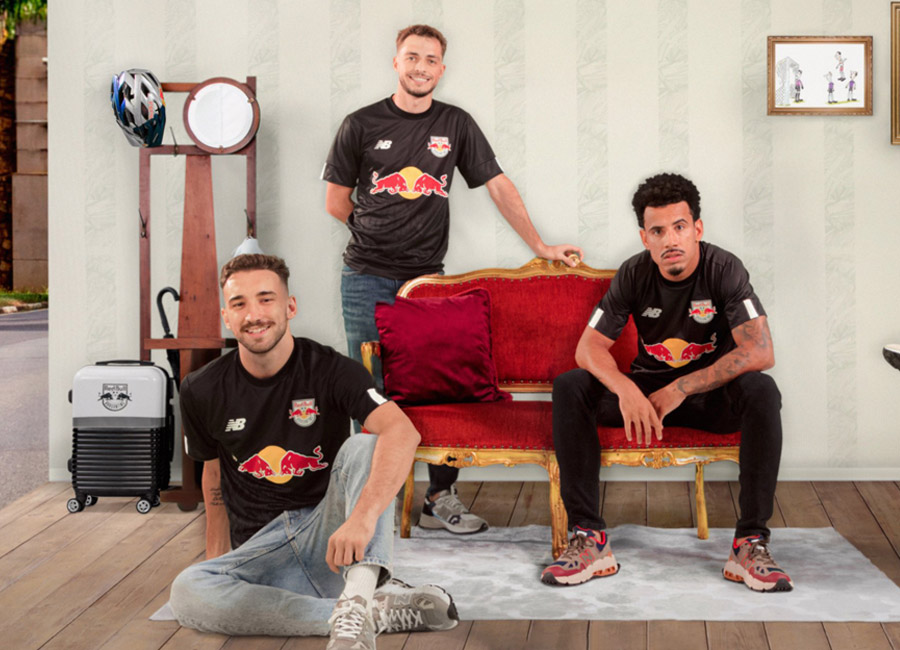 A greyscale graphic low down on the “Movidos por Sonhos” (“Moved by Dreams”) release adds a flourish to the otherwise minimalist design, while the “NB” logo contrasts fully in white and the upper back boasts a “Red Bulls” legend.
