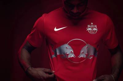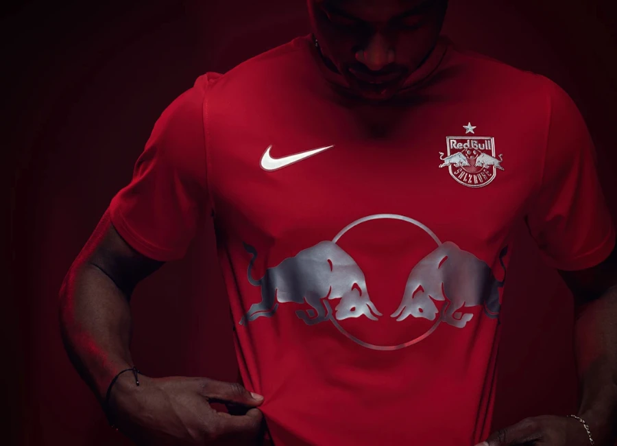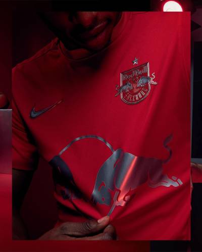 The 2023 Nike fourth ("4th") shirt - released to facilitate this switch from white - augments the largely plain base with the standard energy-drink-centric crest in silver, matching the branding in the main-sponsor position, while there are also mechanical bulls approaching photorealism on the sides.