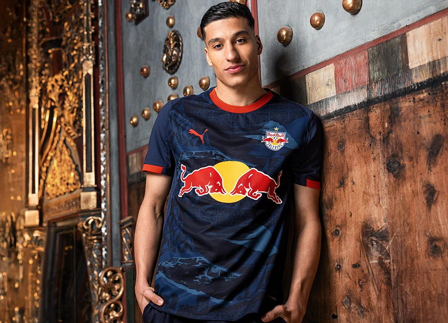The new shirt is inspired by the Hohensalzburg Fortress, a historic landmark overlooking the city, with graphic elements also referencing the ornate Prunksaal hall and Salzburg’s architectural heritage.