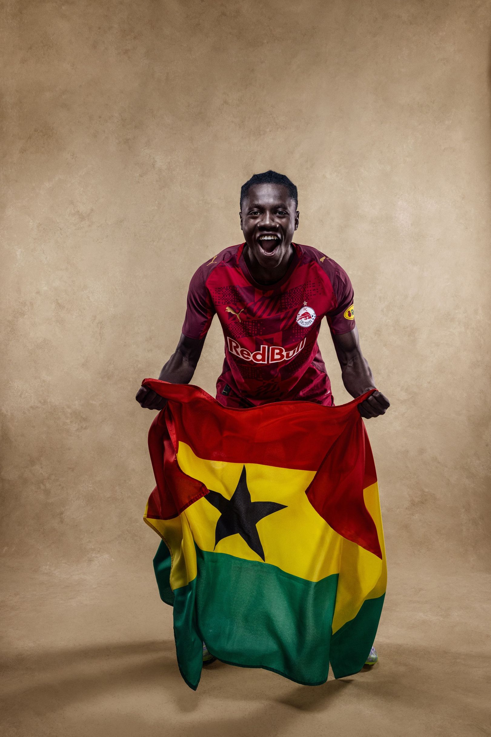 The shirt, designed under the theme “Raise your flag,” represents the international nature of the club and its players, featuring a red base with burgundy geometric graphics across the front and sleeves that symbolise flag patterns.