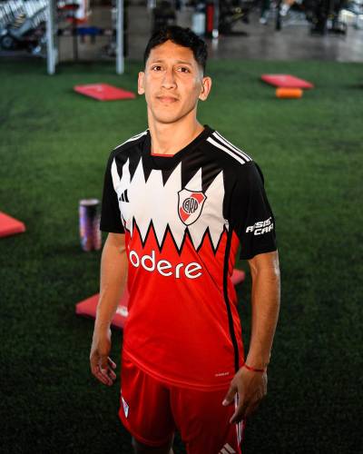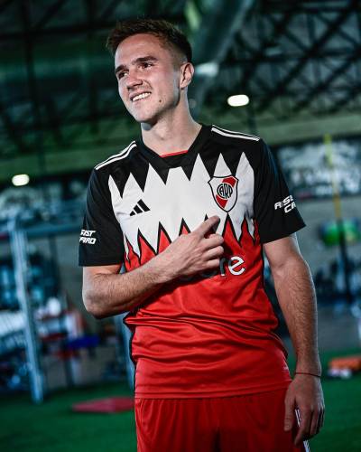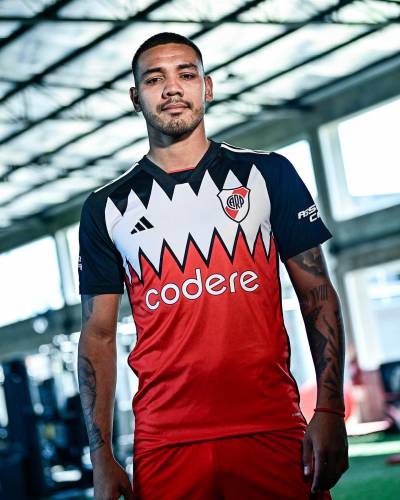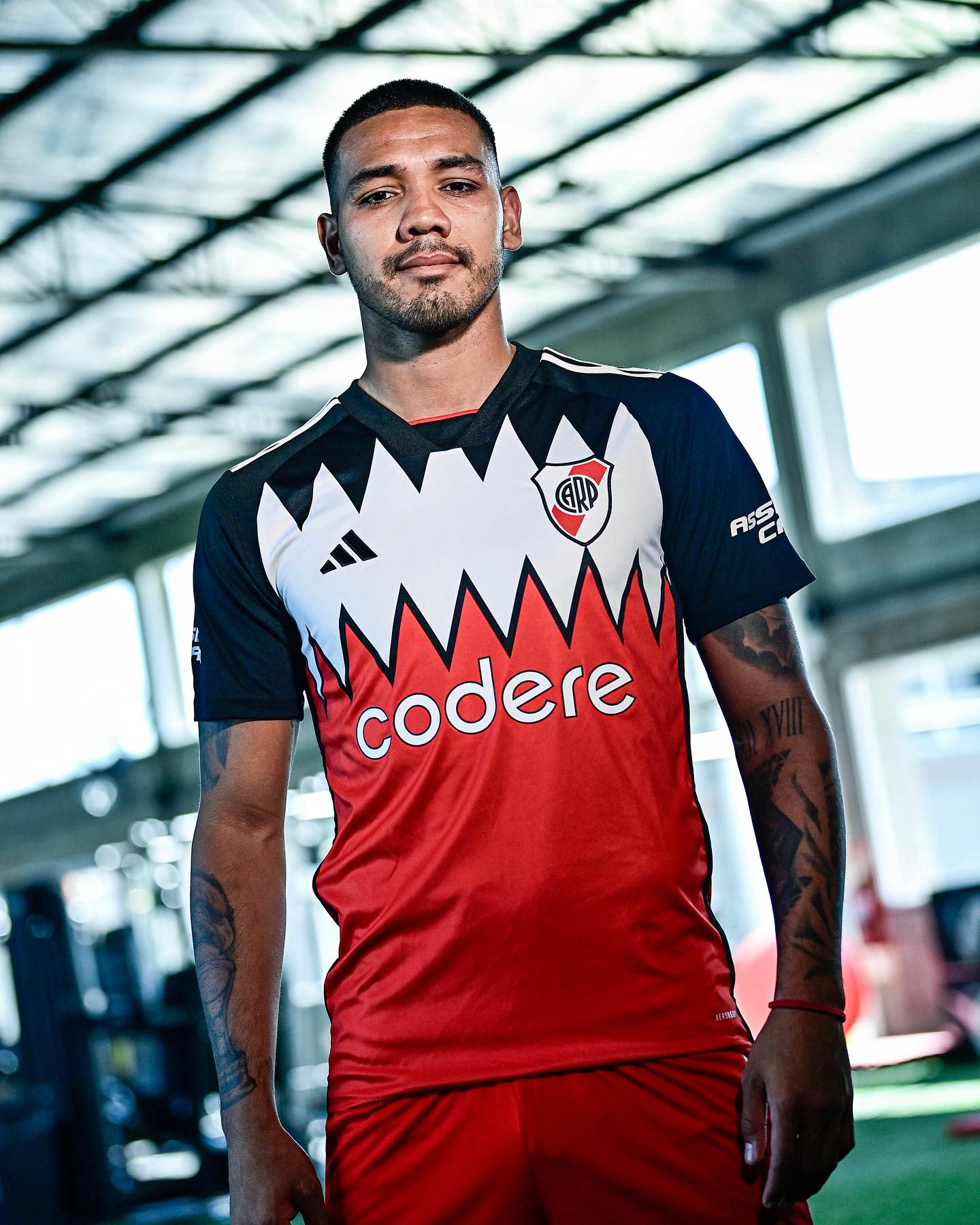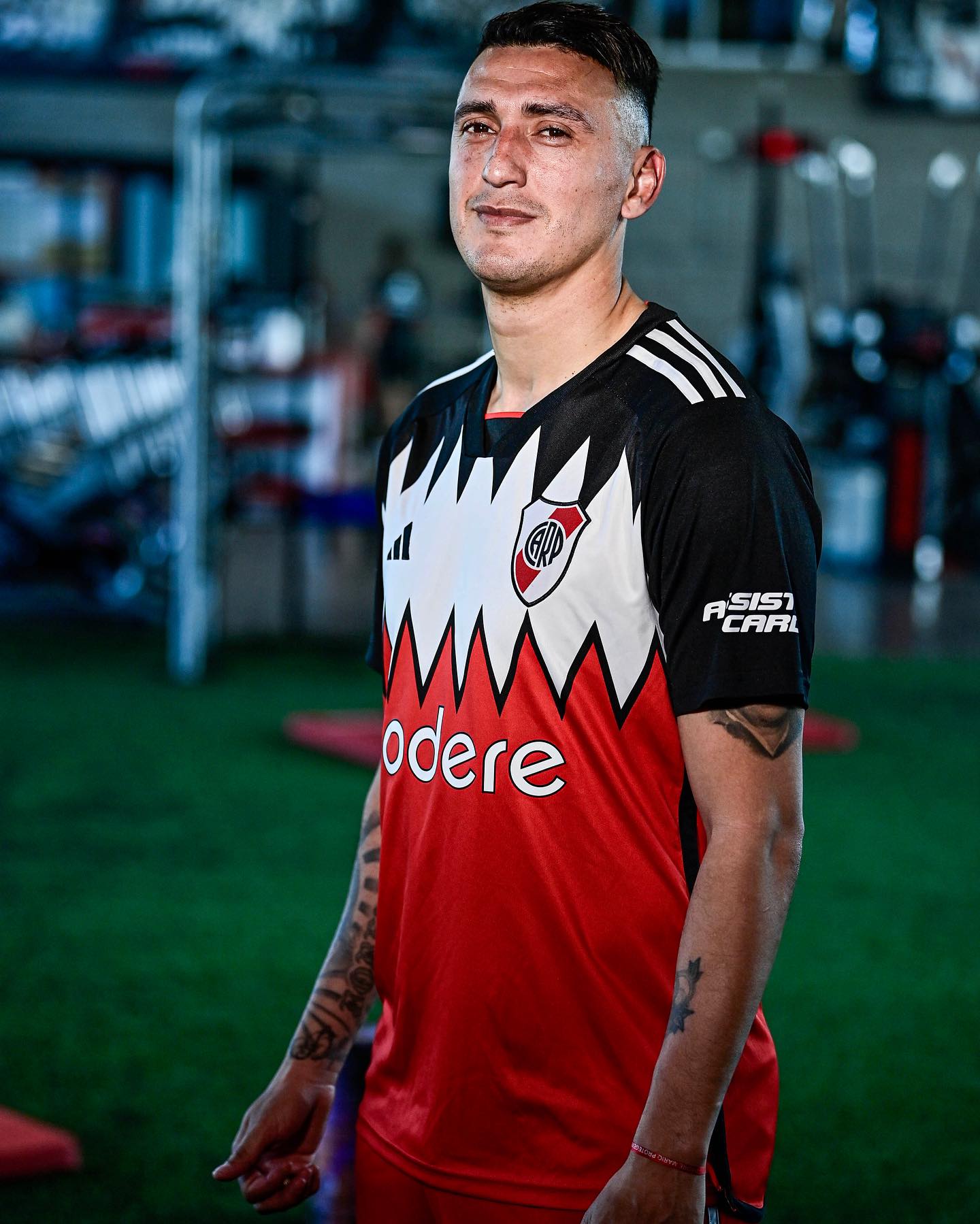 Nodding to a famous change design from the mid-1990s, the release has a spiky graphical look that incorporates Argentine champions River’s white, black and red - with the lattermost featuring most prominently.