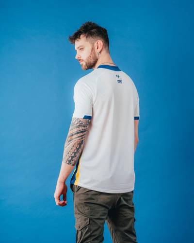 Largely in white, the Argentine Primera División side's 2024 primary-change release nods to the first-choice colours in the “painted” yellow and blue stripes in the lower portion, as well as in the crest and trim.