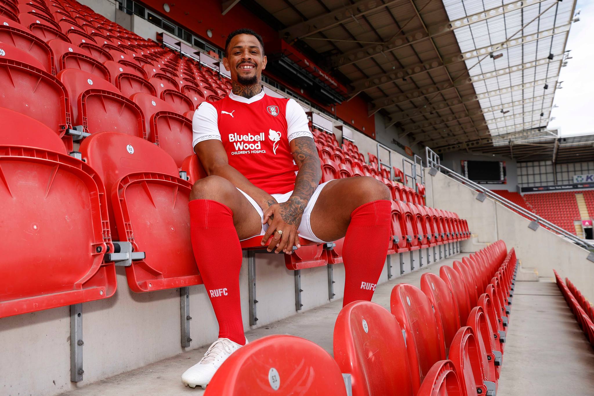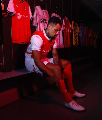 The kit is completed with white shorts and red socks, the latter bearing the club initialism, “RUFC”.
