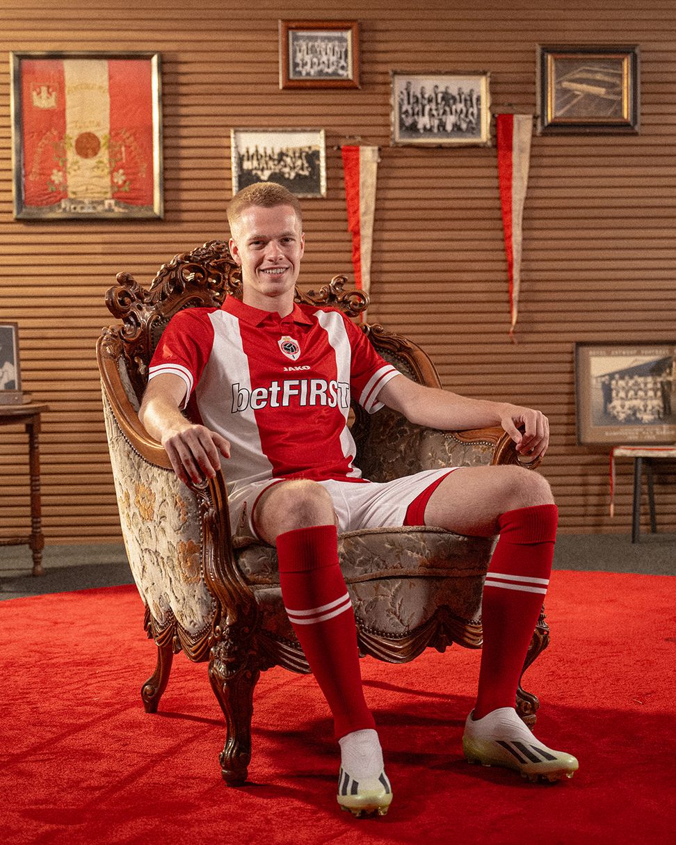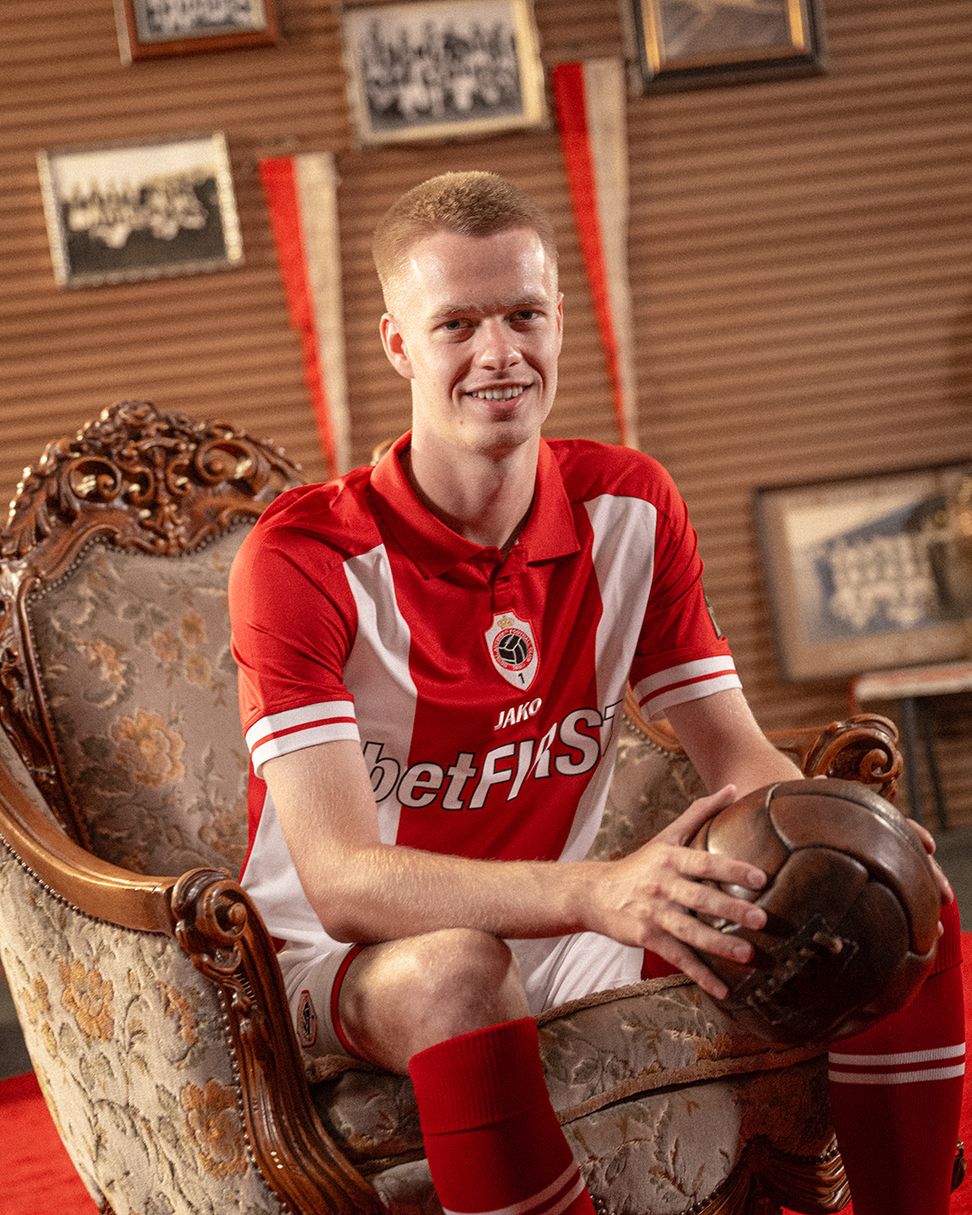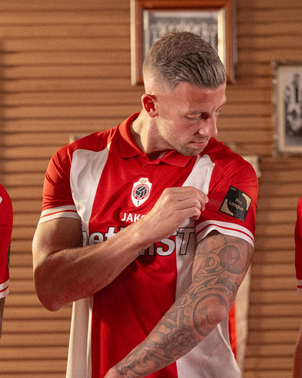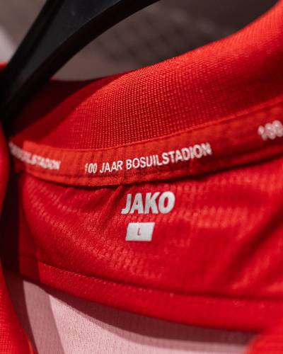 A celebration of the 100th birthday of Royal Antwerp’s Bosuilstadion ground, this is the Belgian Jupiler Pro League champions’ 2023-24 Home shirt.