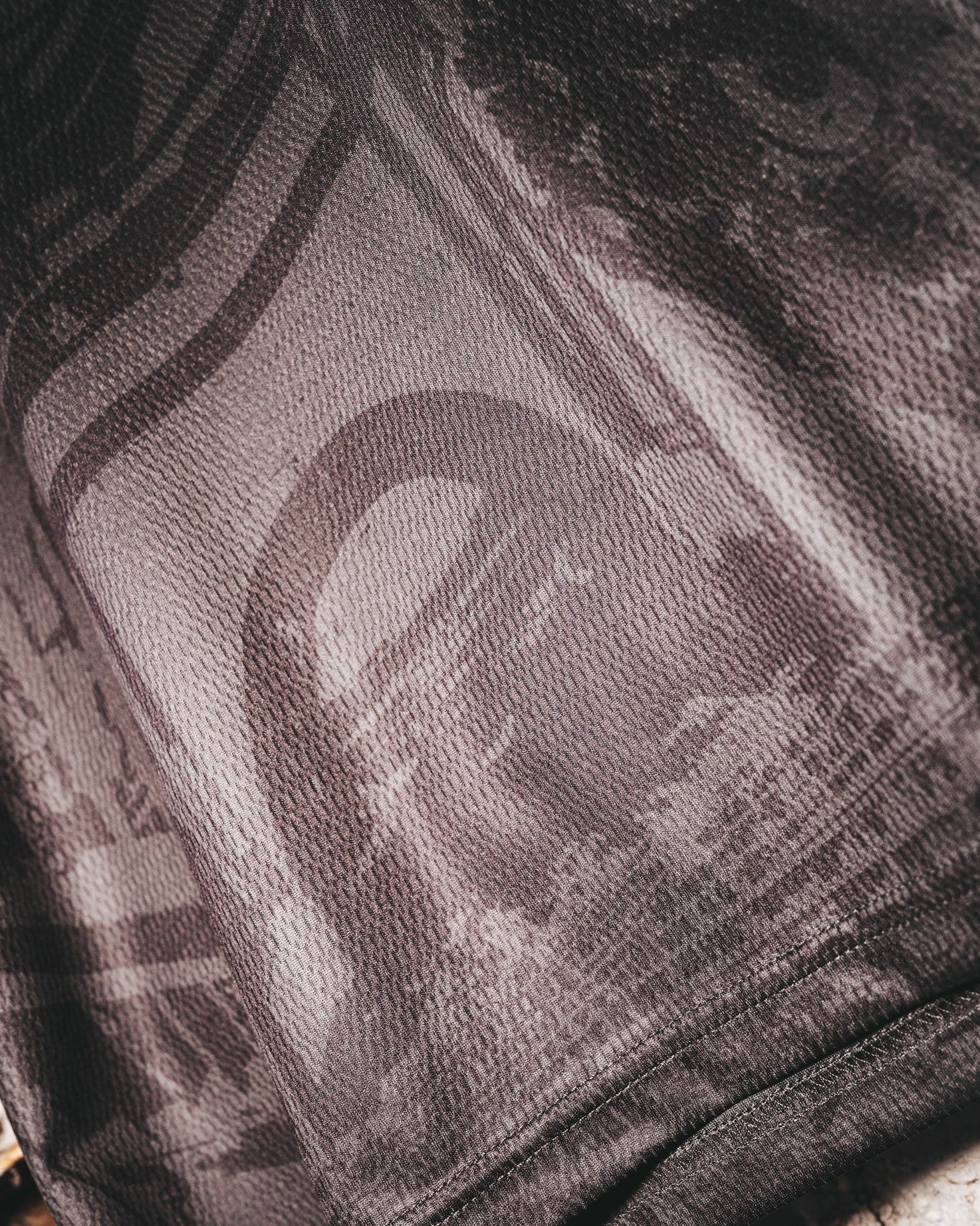 The design is set on a dark grey base with a graphic pattern that integrates architectural features of the demolished stand, including arches, benches, floodlights, and roof details. Red and white accents highlight the collar and sleeve cuffs, linking the tribute to the club’s traditional colours.