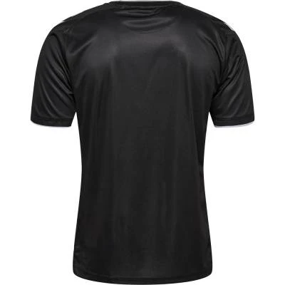 Otherwise black, save for the neck-and-cuff trim and the Hummel chevrons on the shoulders, the shirt forms the principal element of a kit which is completed with black shorts and socks to form a nominally single-coloured secondary-change outfit.