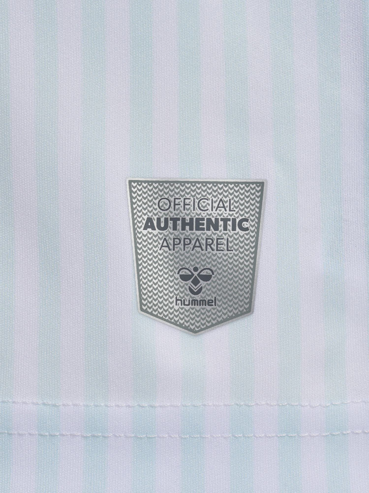 Like a “green-scale” modernisation of the famous “Mexico” template (worn by the “Danish Dynamite” Denmark side at the Mexico ’86 World Cup), the largely light - and significantly white - change release for the French Ligue 2 side keeps to the dual-coloured palette aside from the golden border around the crest and the sparing use of French Tricolore flourishes.