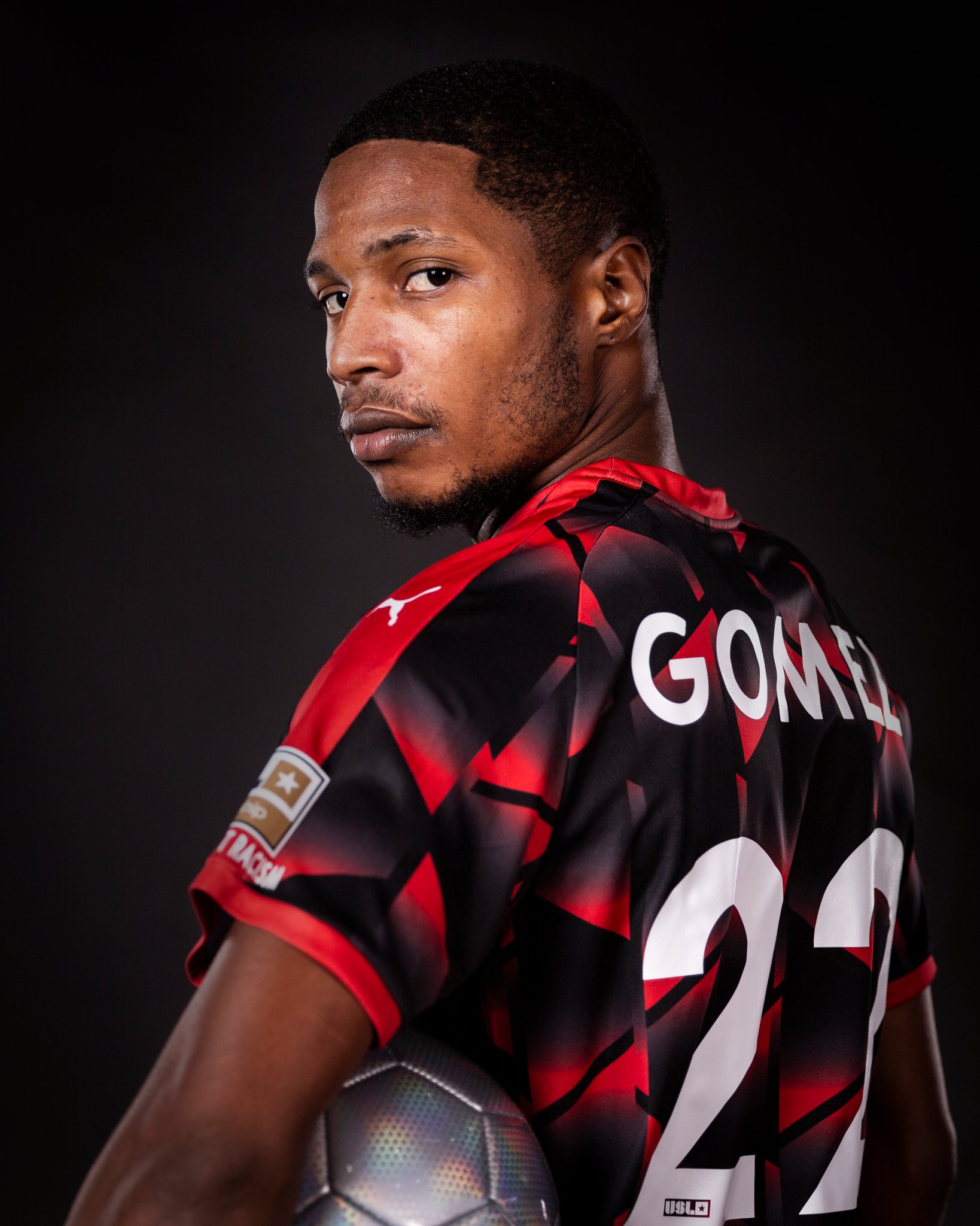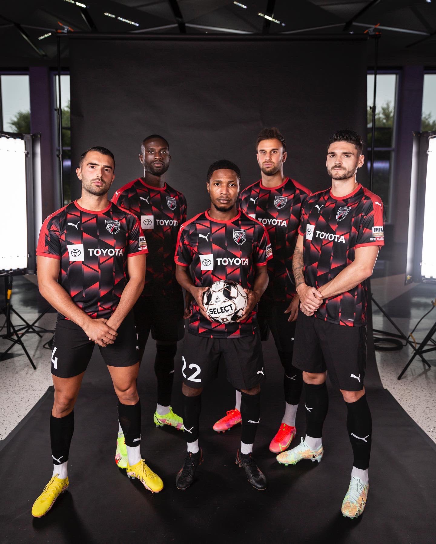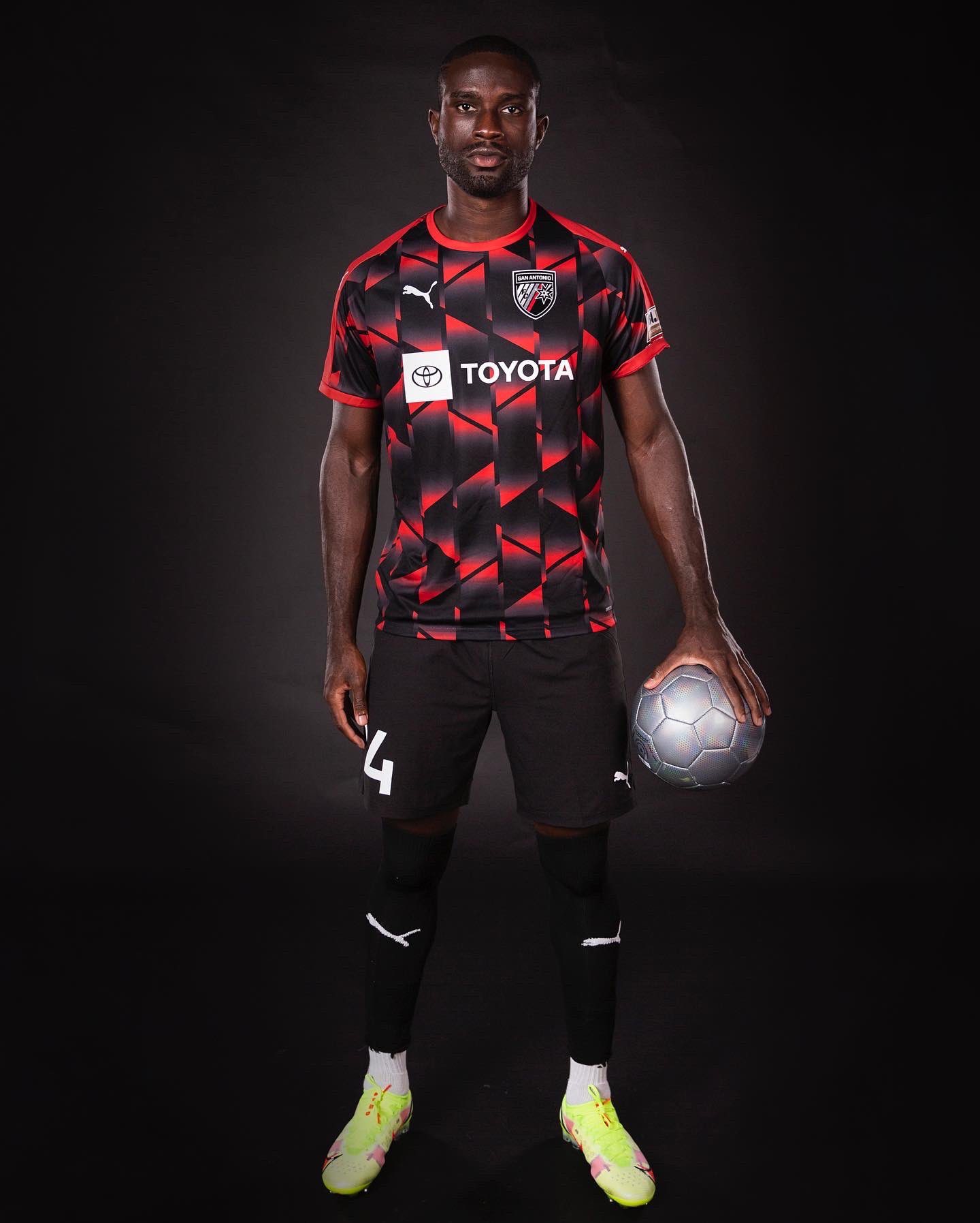 The 2022 design for the Texas-based USL Championship side features an allover pattern in black, grey and red, with the crest in full colour - to match - and supplier Puma’s logos in white.