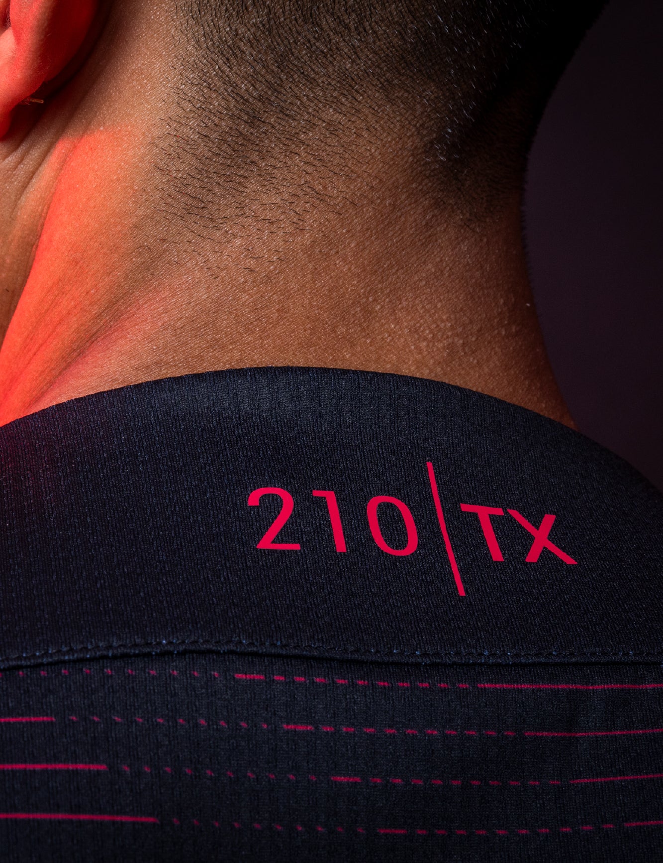 The black jersey takes inspiration from the San Antonio River Walk, with flowing graphic lines symbolising the movement of the water through the city. A bold blue outline of the river runs down the front, reinforcing the connection to this iconic landmark. The collar and sleeve trim feature red, white, and black details, and “210 | TX” is printed on the back of the neck, referencing the city’s area code.
